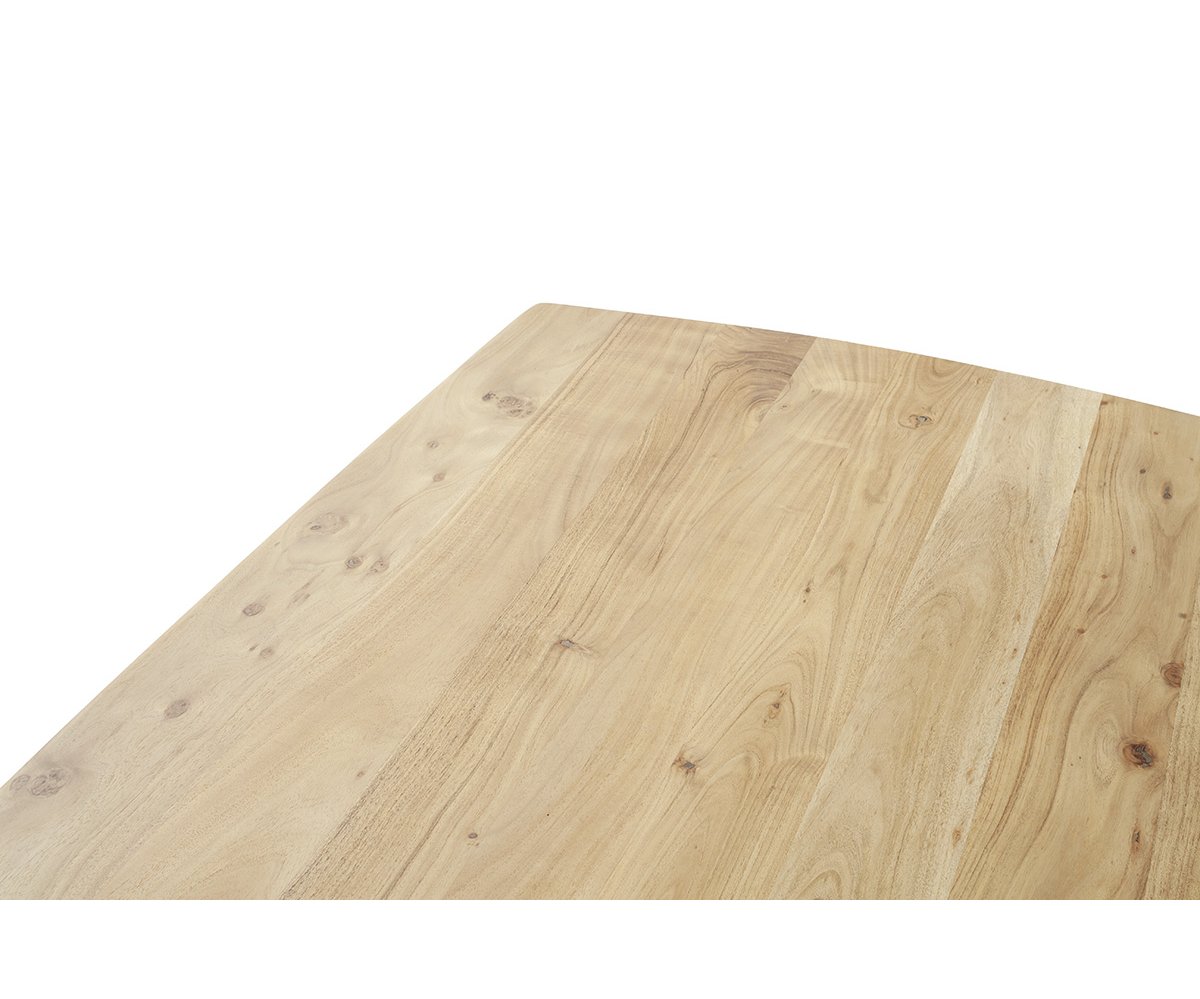 Deska stolu o tloušťce 3,5 cm je vyrobena z lakované přírodní akácie, jejíž jedinečná struktura vnáší do interiéru teplo a přirozenou eleganci. Povrch je ošetřen kvalitním lakem, který zvýrazňuje krásu dřeva a zároveň chrání před každodenním opotřebením.