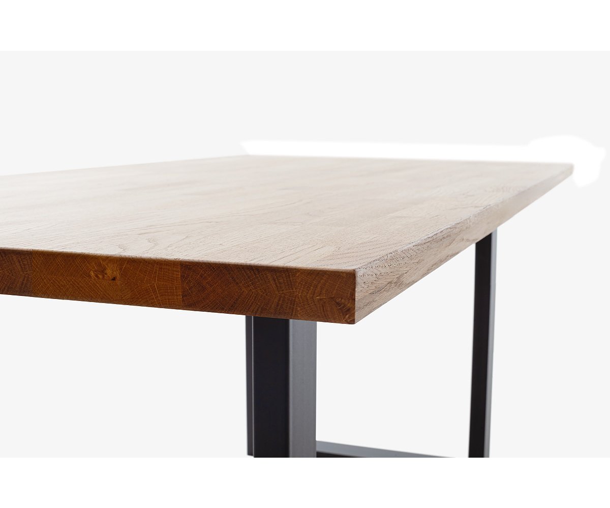Jídelní stůl DEBA zaujme precizním zpracováním, poctivými materiály a nadčasovým industriálním stylem. Deska je vyrobena z masivního olejovaného dubu divokého, který vyniká výraznou kresbou dřeva a vysokou odolností. Díky tloušťce 4 cm (se zahušťovaným okrajem) působí stůl robustním a elegantním dojmem zároveň.