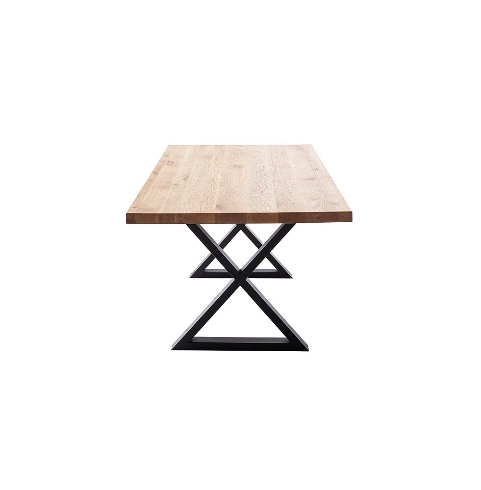 Jídelní stůl DEBA zaujme precizním zpracováním, poctivými materiály a nadčasovým industriálním stylem. Deska je vyrobena z masivního olejovaného dubu divokého, který vyniká výraznou kresbou dřeva a vysokou odolností. Díky tloušťce 4 cm (se zahušťovaným okrajem) působí stůl robustním a elegantním dojmem zároveň.