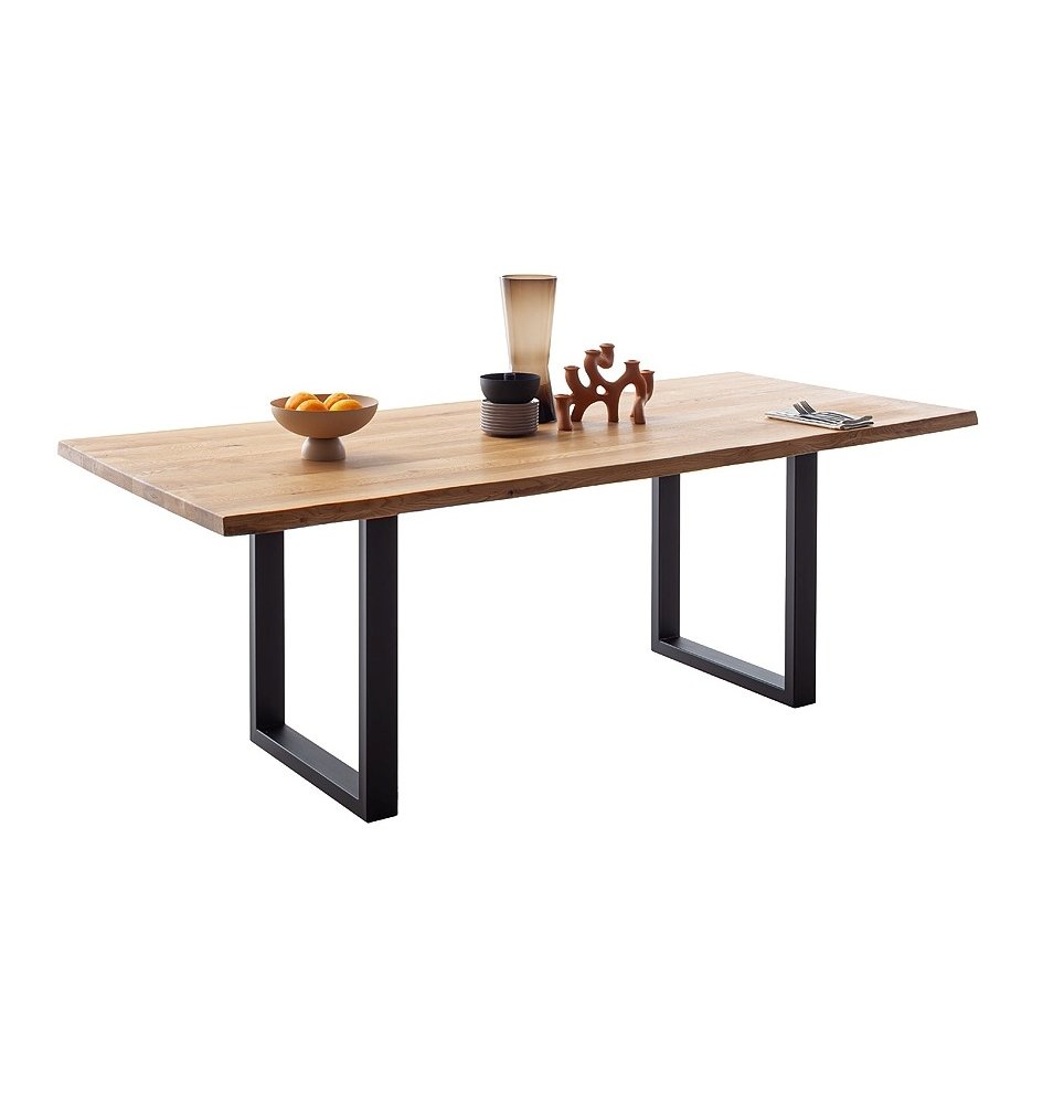 Jídelní stůl DEBA zaujme precizním zpracováním, poctivými materiály a nadčasovým industriálním stylem. Deska je vyrobena z masivního olejovaného dubu divokého, který vyniká výraznou kresbou dřeva a vysokou odolností. Díky tloušťce 4 cm (se zahušťovaným okrajem) působí stůl robustním a elegantním dojmem zároveň.