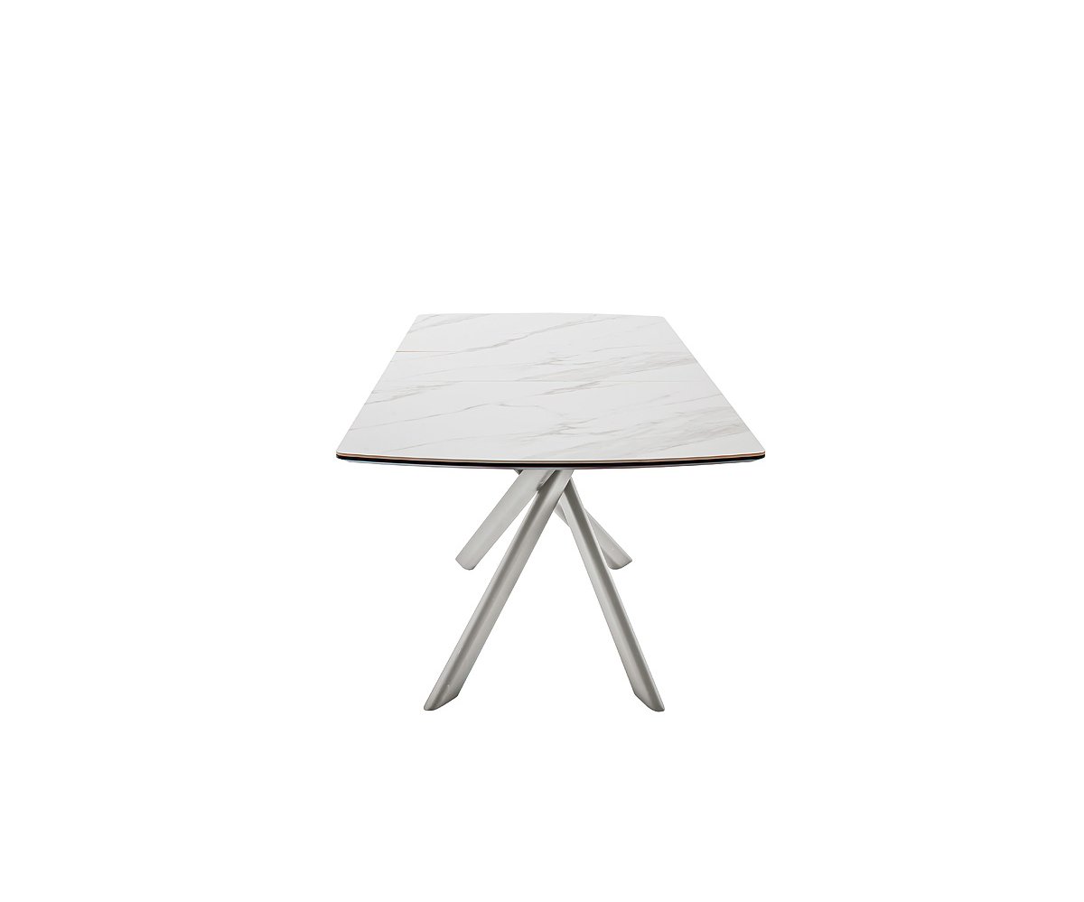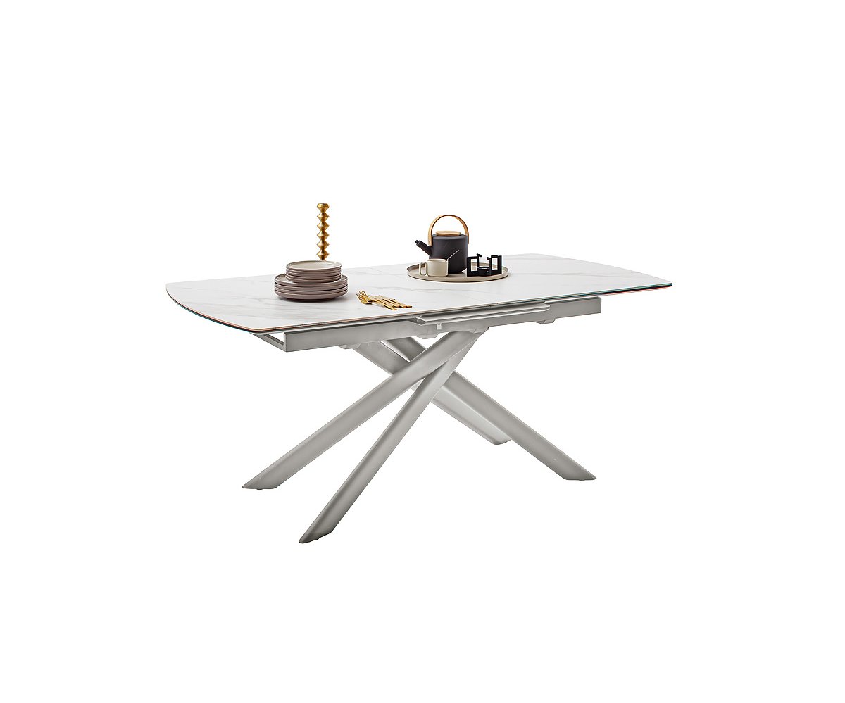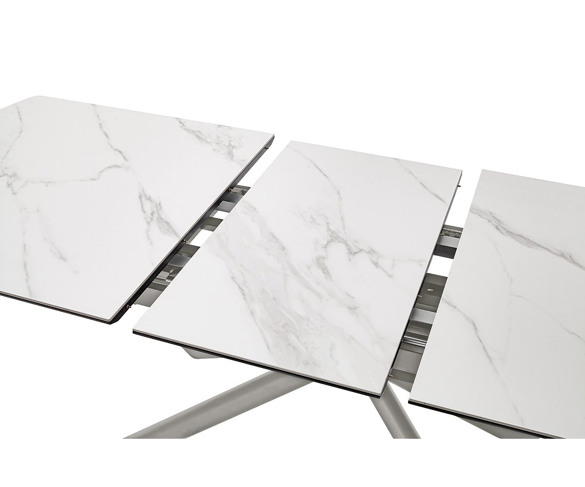 Moderní jídelní stůl VANINO spojuje nadčasovou eleganci s praktickou funkčností. Jeho sofistikovaný design zaujme kombinací keramické desky s mramorovým dekorem a robustní kovové podnože v broušené nerezové oceli. Stůl působí luxusně a zároveň se snadno začlení do moderního i minimalistického interiéru.