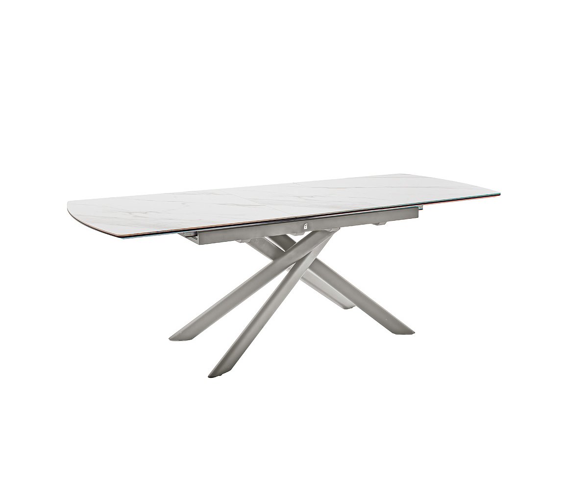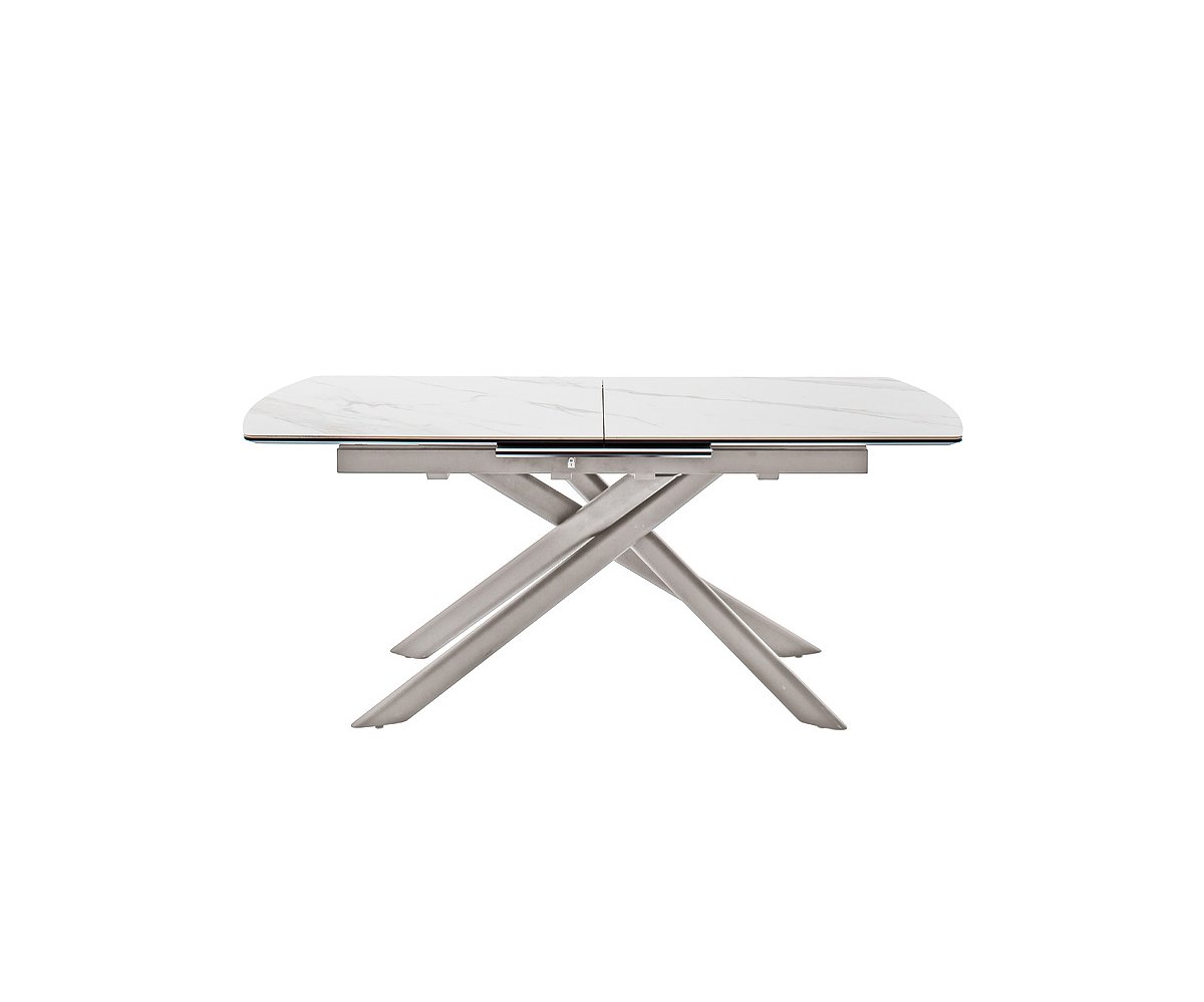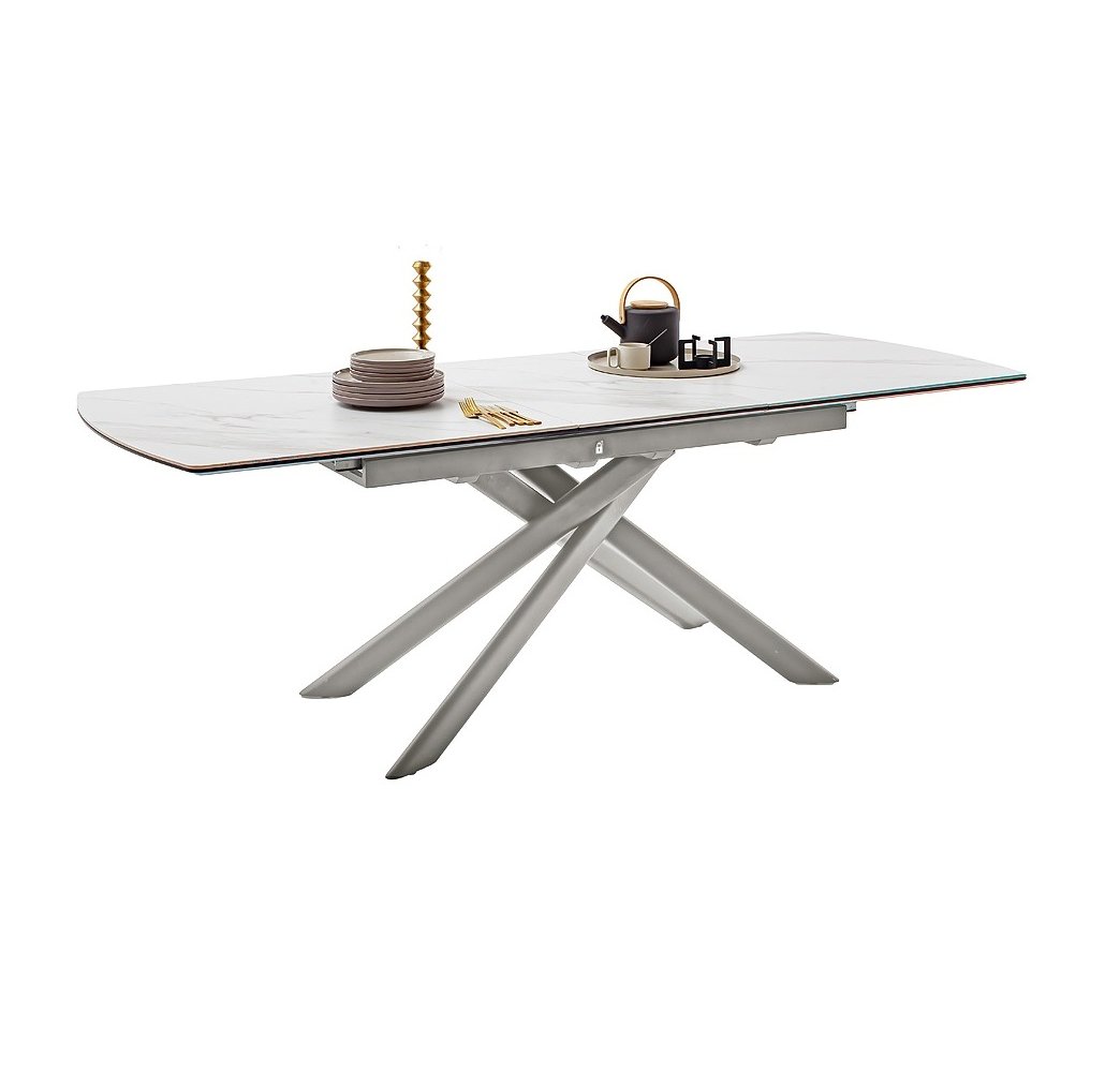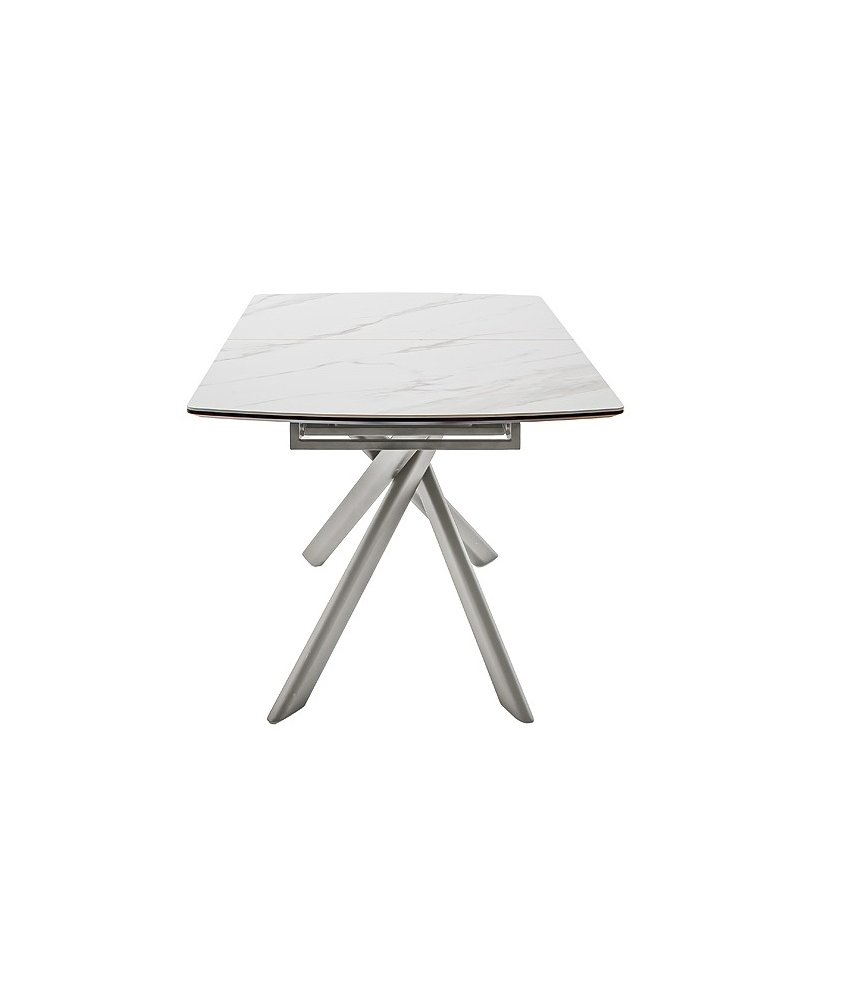 Moderní jídelní stůl VANINO spojuje nadčasovou eleganci s praktickou funkčností. Jeho sofistikovaný design zaujme kombinací keramické desky s mramorovým dekorem a robustní kovové podnože v broušené nerezové oceli. Stůl působí luxusně a zároveň se snadno začlení do moderního i minimalistického interiéru.