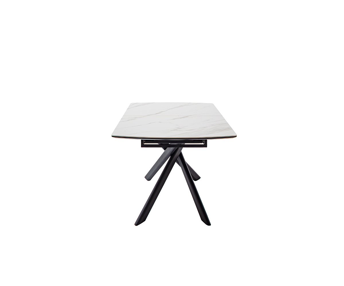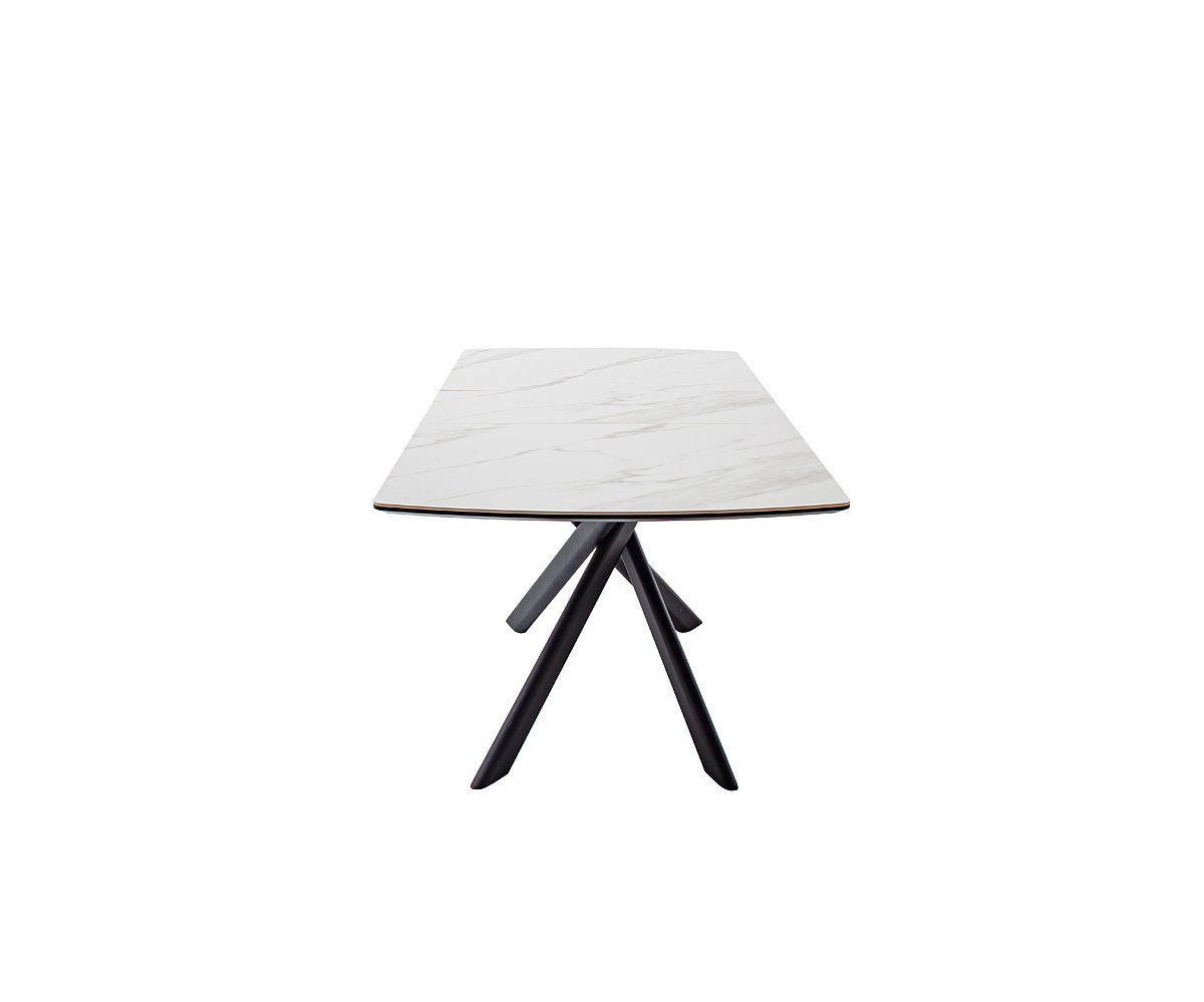 Moderní jídelní stůl VANINO spojuje nadčasovou eleganci s praktickou funkčností. Jeho sofistikovaný design zaujme kombinací keramické desky s mramorovým dekorem a robustní kovové podnože v broušené nerezové oceli. Stůl působí luxusně a zároveň se snadno začlení do moderního i minimalistického interiéru.