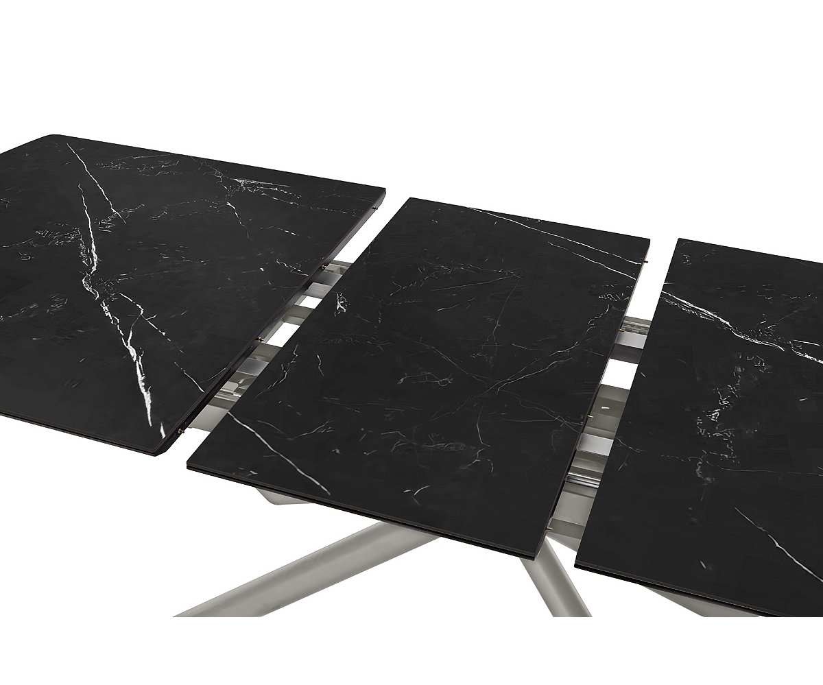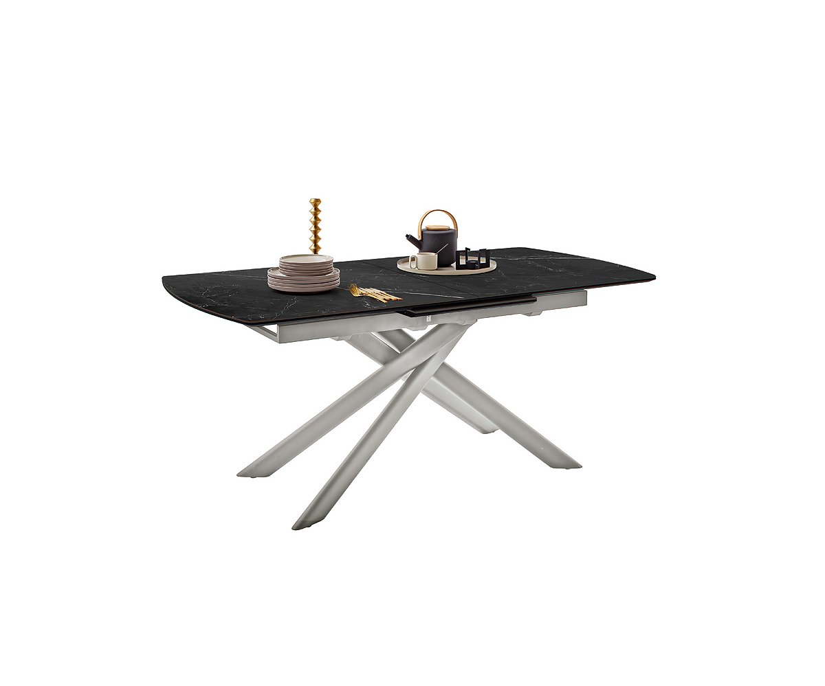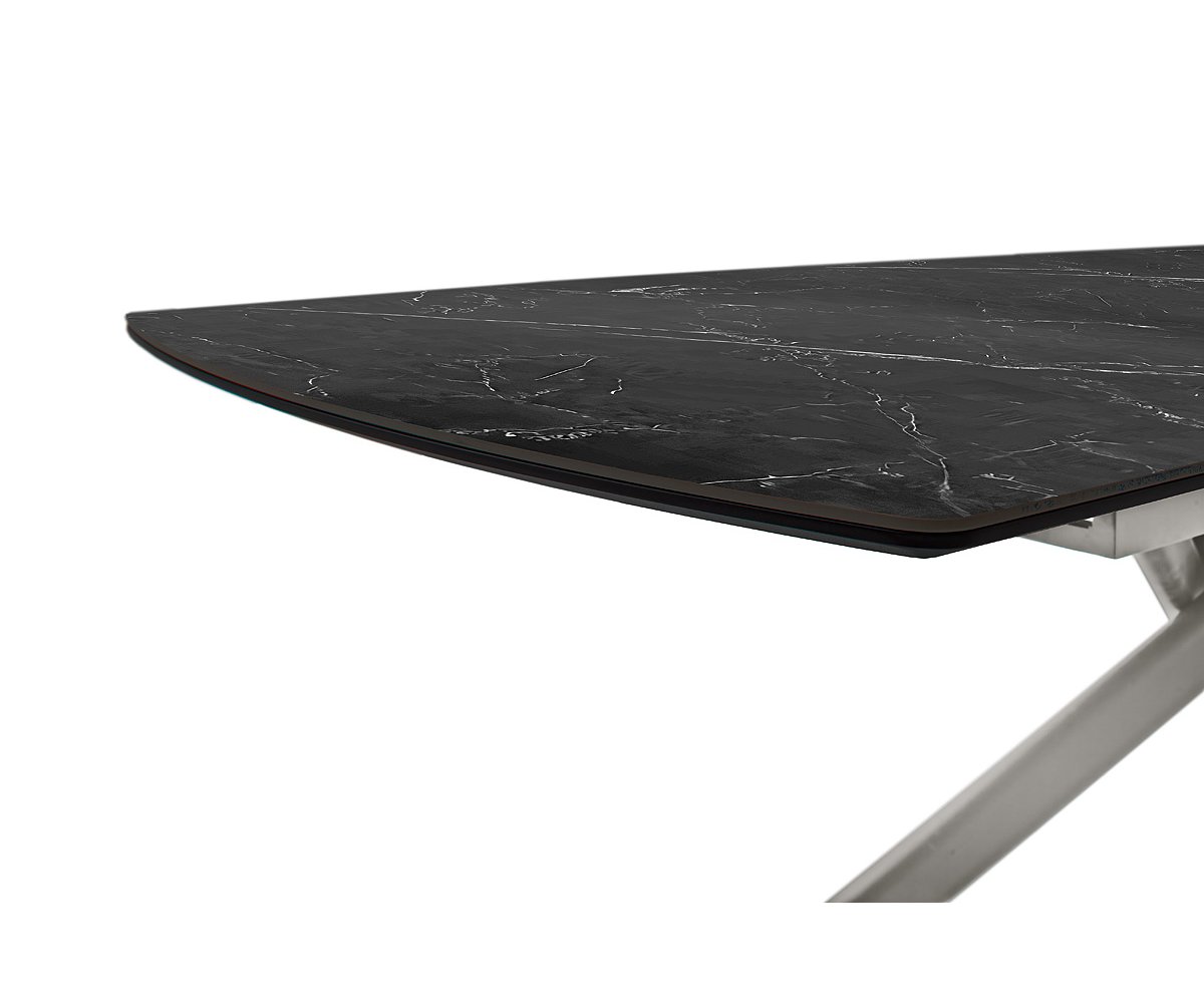 Moderní jídelní stůl VANINO spojuje nadčasovou eleganci s praktickou funkčností. Jeho sofistikovaný design zaujme kombinací keramické desky s mramorovým dekorem a robustní kovové podnože v broušené nerezové oceli. Stůl působí luxusně a zároveň se snadno začlení do moderního i minimalistického interiéru.