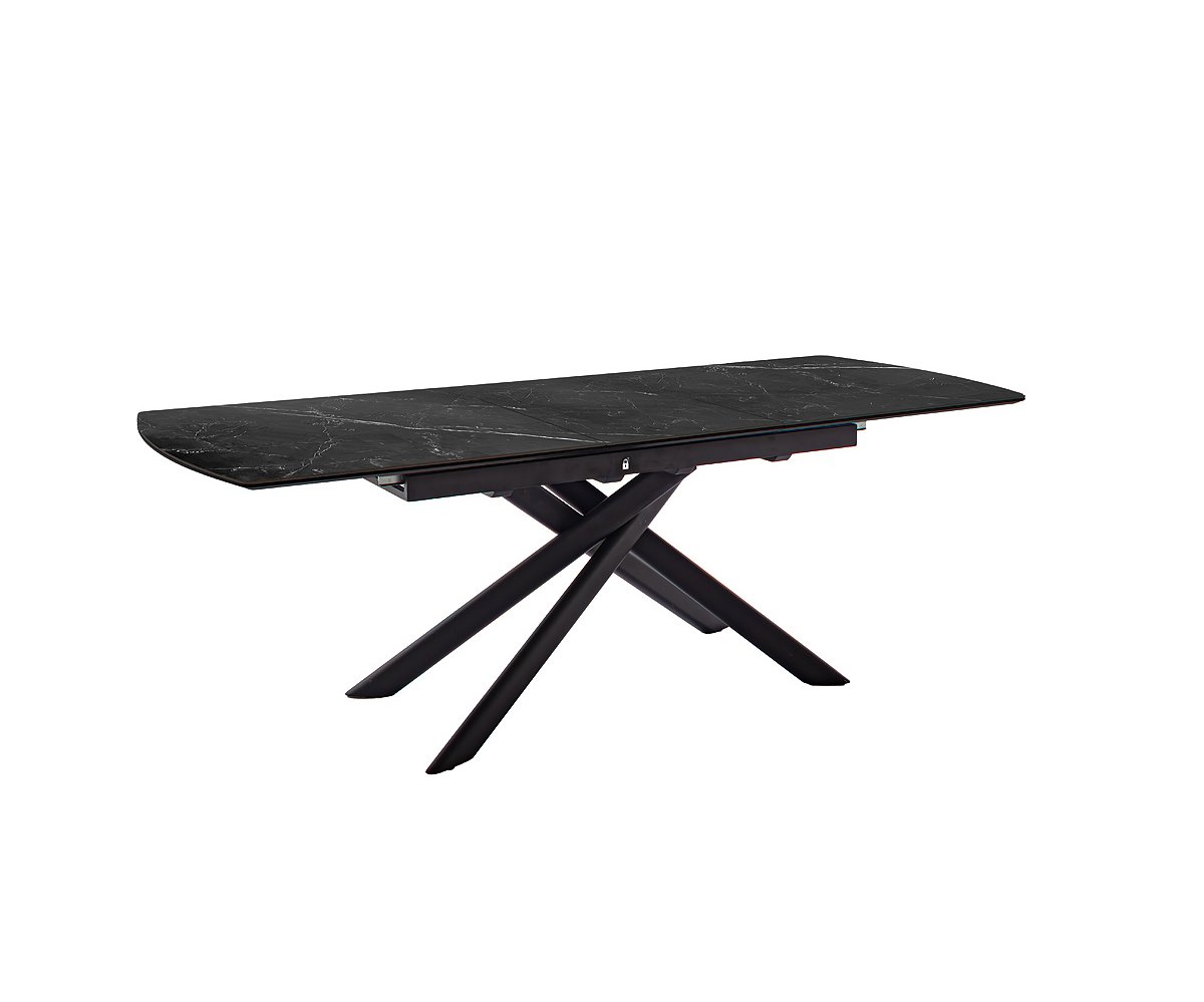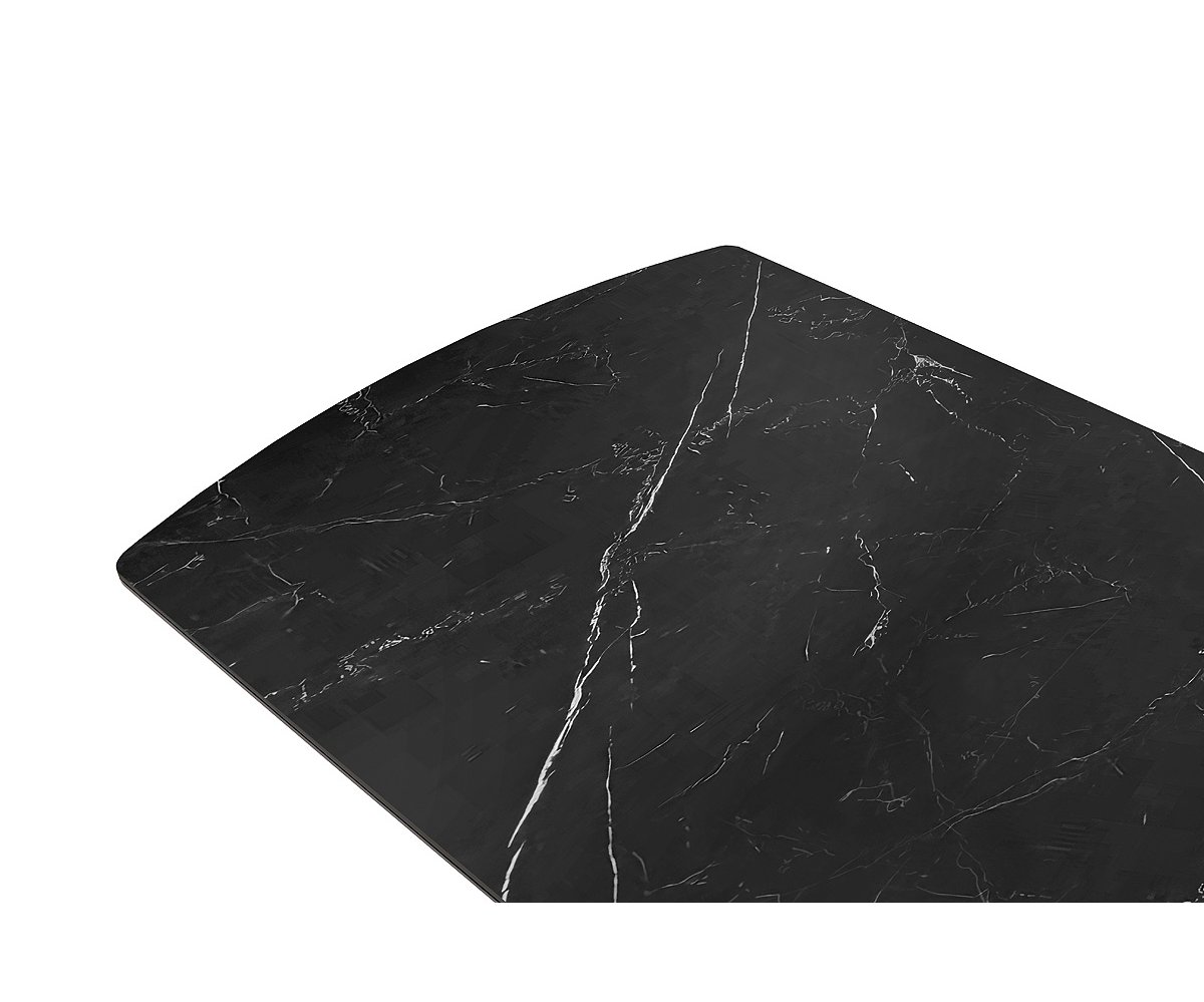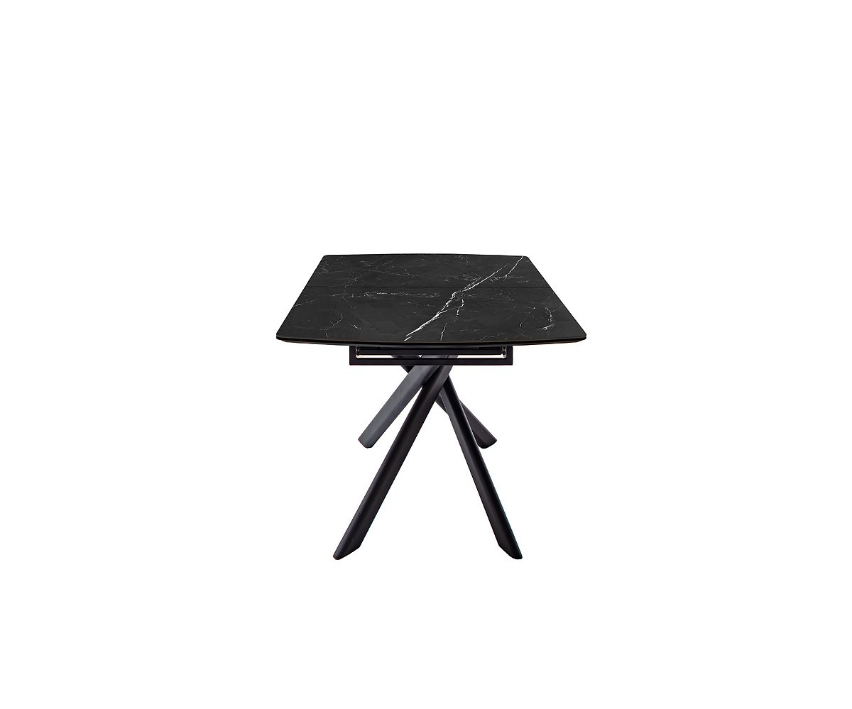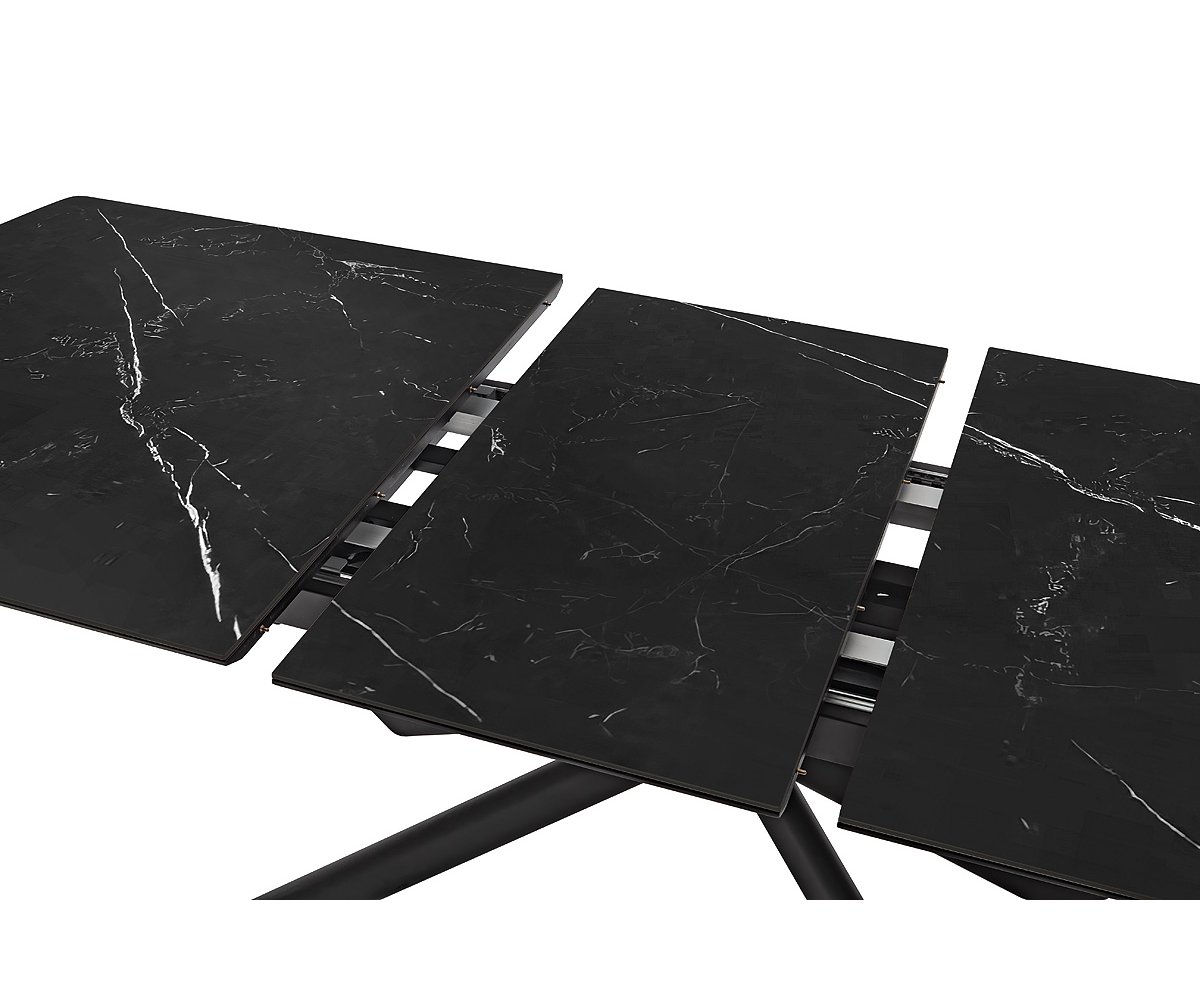 Rozkládací jídelní stůl VANINO keramika černý mramor, podnož černá matná 180(230)x76x90