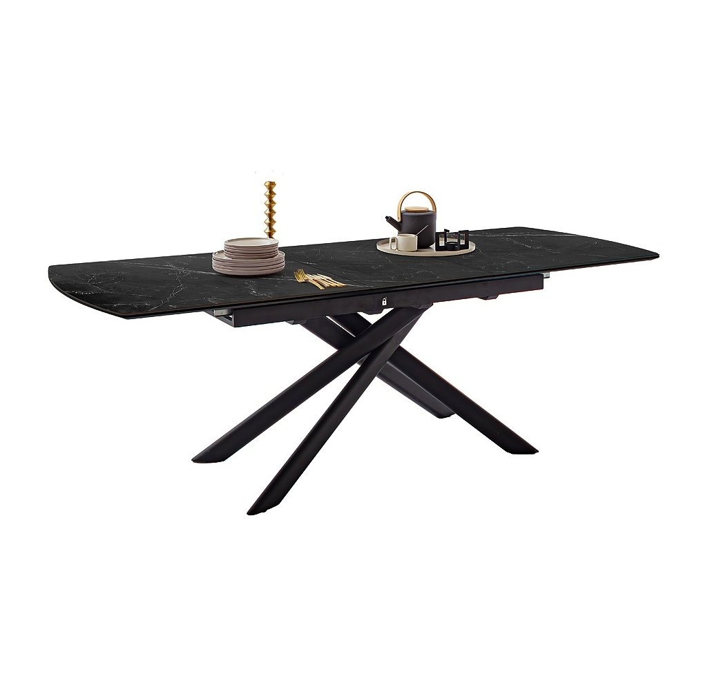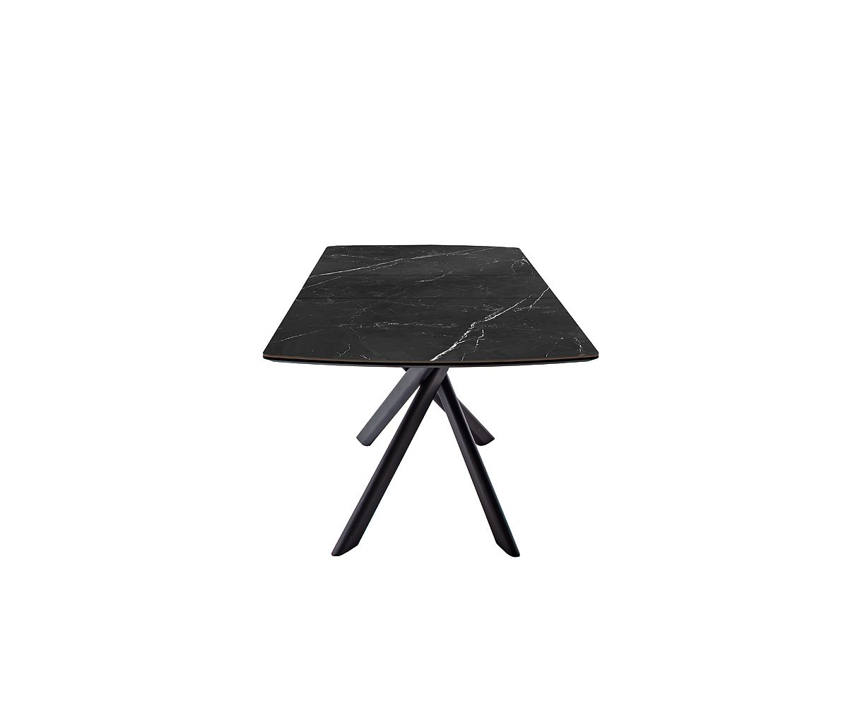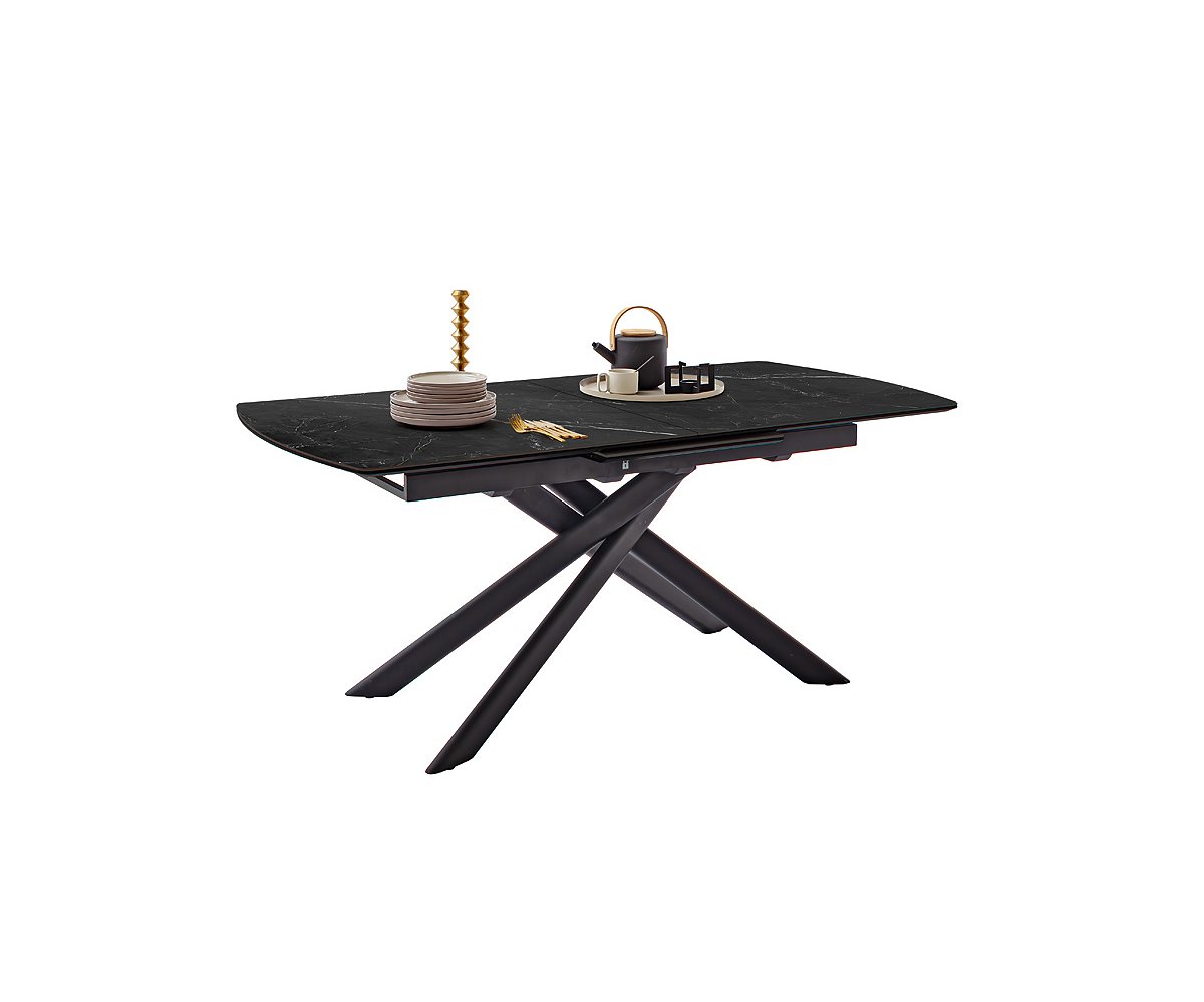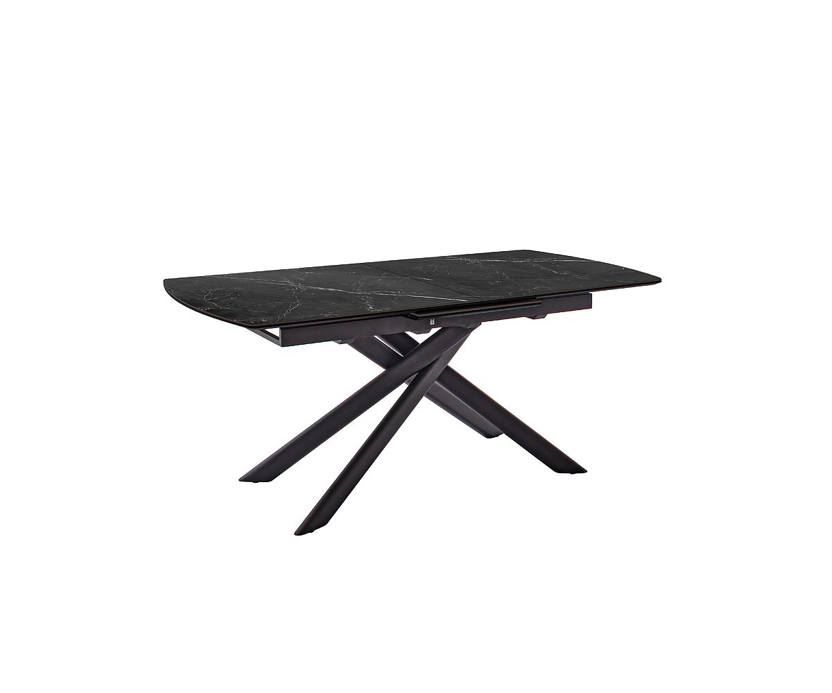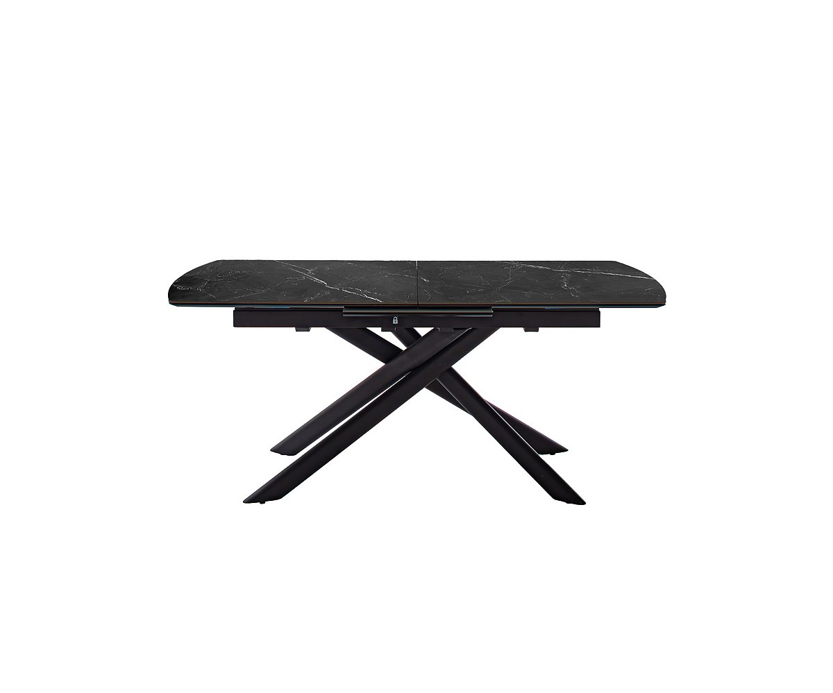 Rozkládací jídelní stůl VANINO keramika černý mramor, podnož černá matná 180(230)x76x90