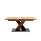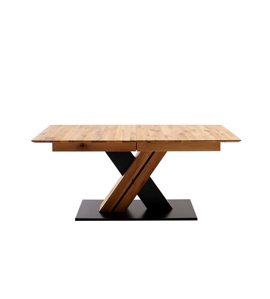 Dominantním prvkem modelu MORENA X je křížová podnož ve tvaru písmene X, vyrobená z kombinace masivního dubu a MDF desky lakované v antracitově černé barvě. Celou konstrukci doplňuje stabilní základna z MDF lakovaná v antracitově šedém odstínu, která dodává stolu pevnost a moderní charakter. Spojení teplého tónu dřeva s kontrastní kovově-antracitovou barvou vytváří výrazný, ale harmonický design, ideální pro moderní i přírodně laděné interiéry.