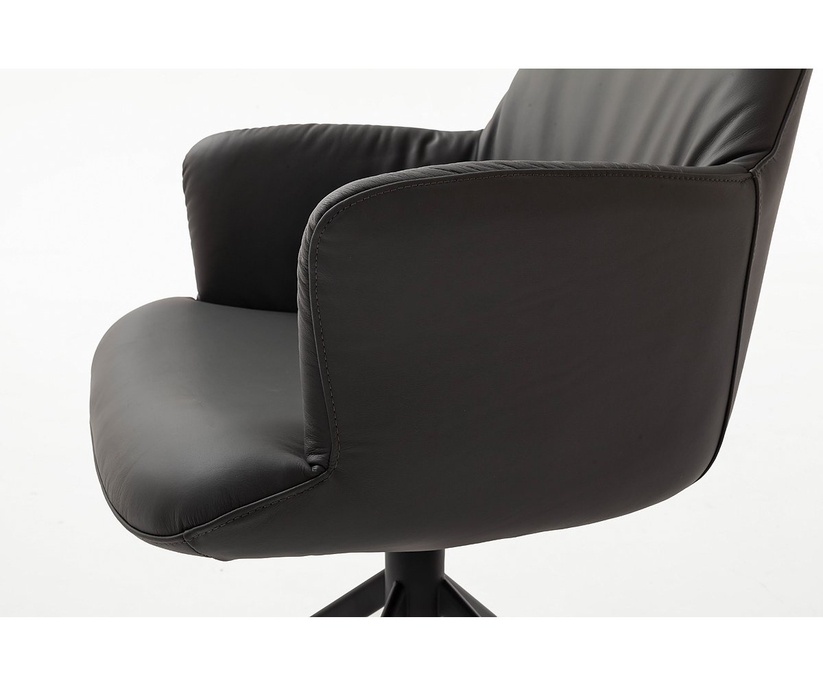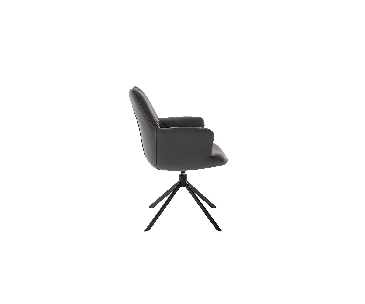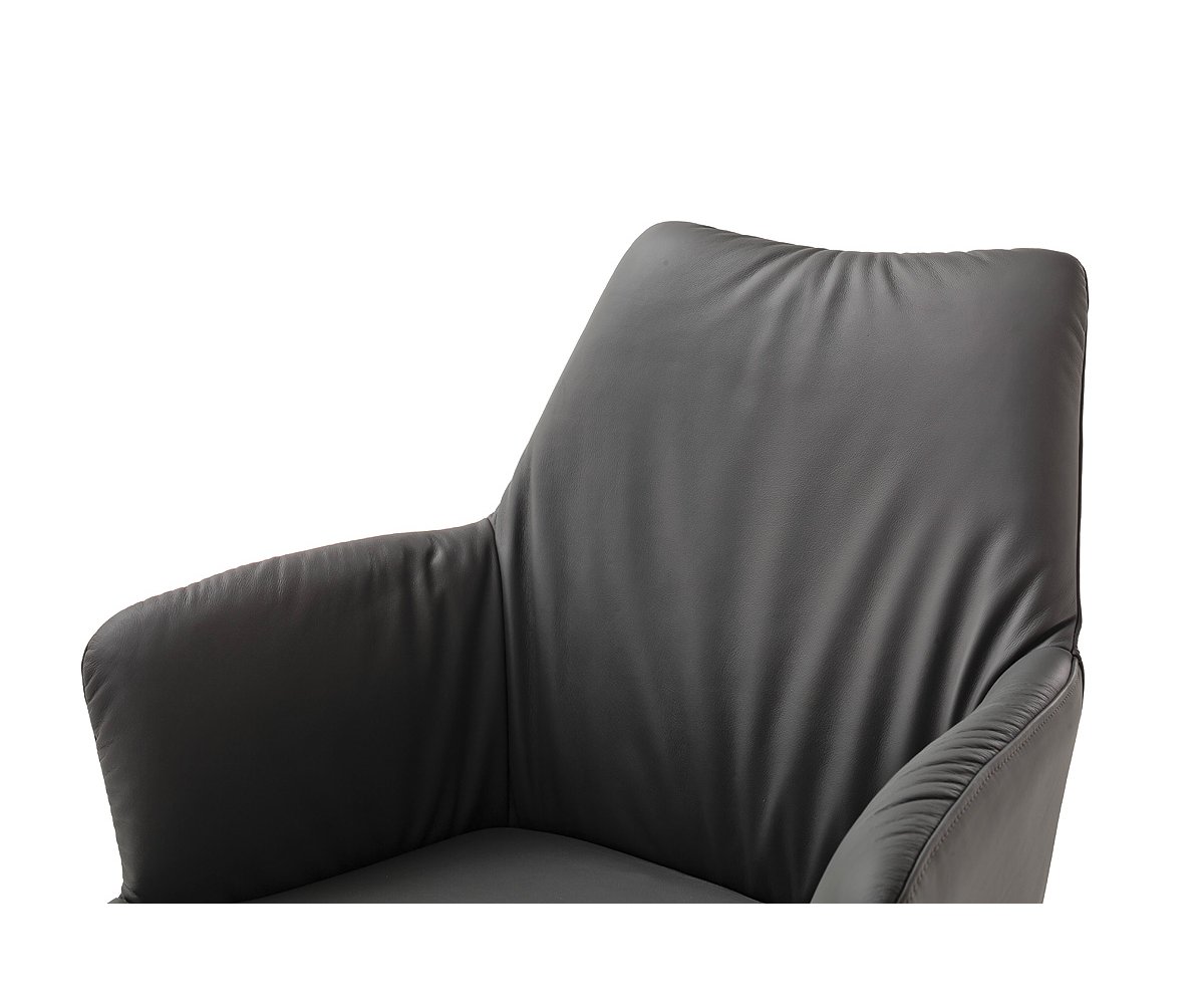 Židle je čalouněná pravou kůží (100 % leather), která dodává interiéru nádech exkluzivity a zároveň zajišťuje mimořádnou odolnost i snadnou údržbu. Měkké čalounění v kombinaci s integrovanými područkami poskytuje vysoký komfort při sezení i při delším stolování.