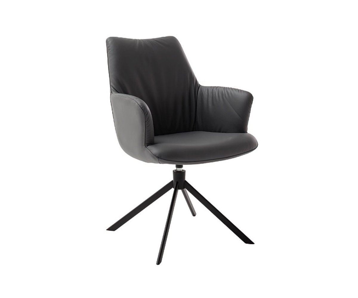 Díky otočnému mechanismu o 360° s automatickým návratem a houpací funkcí nabízí židle přirozený pohyb a maximální pohodlí. Stabilitu zaručuje kovová podnož z oválných, kuželovitých trubek v černém matném laku, která židli dodává moderní a elegantní charakter.