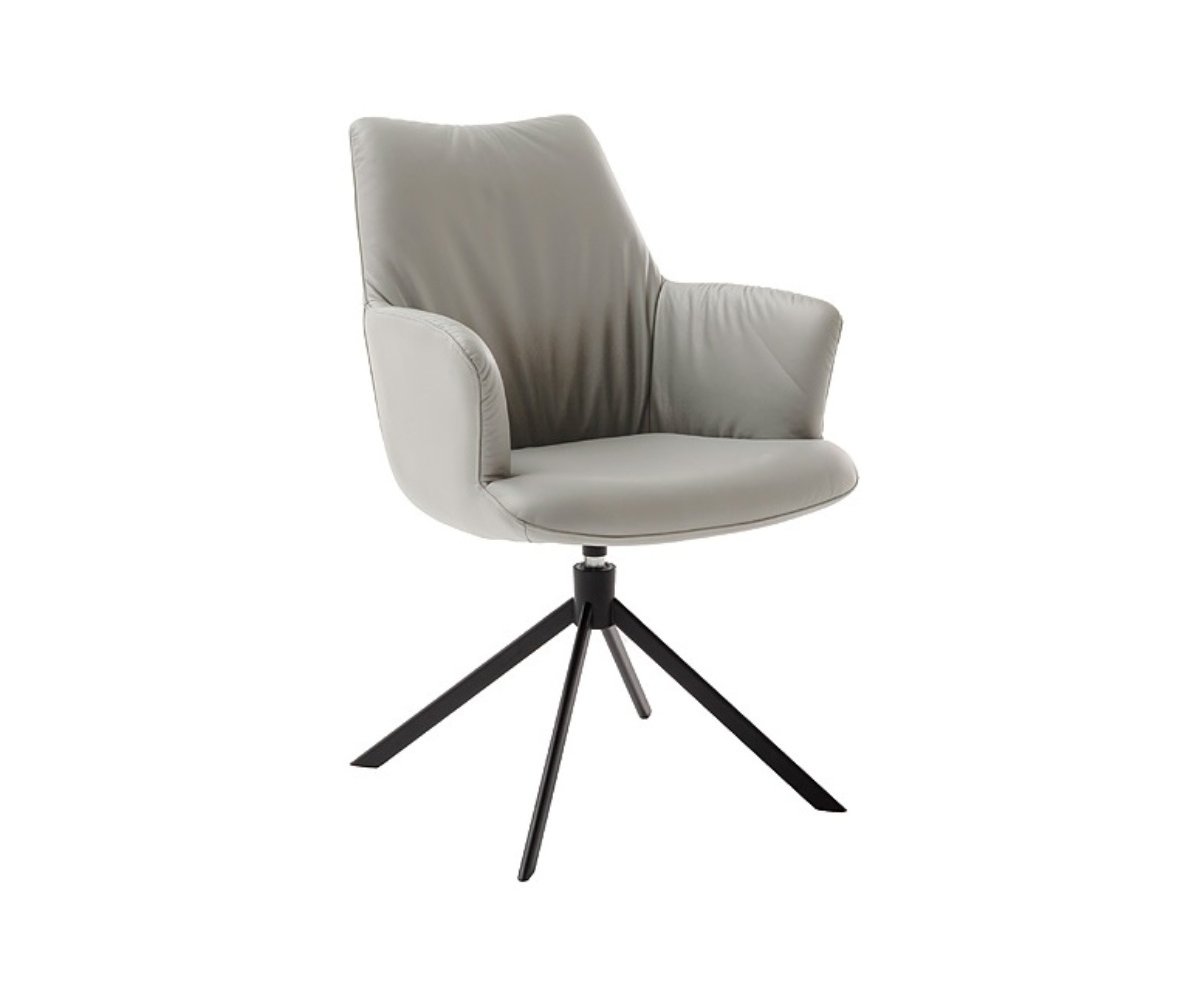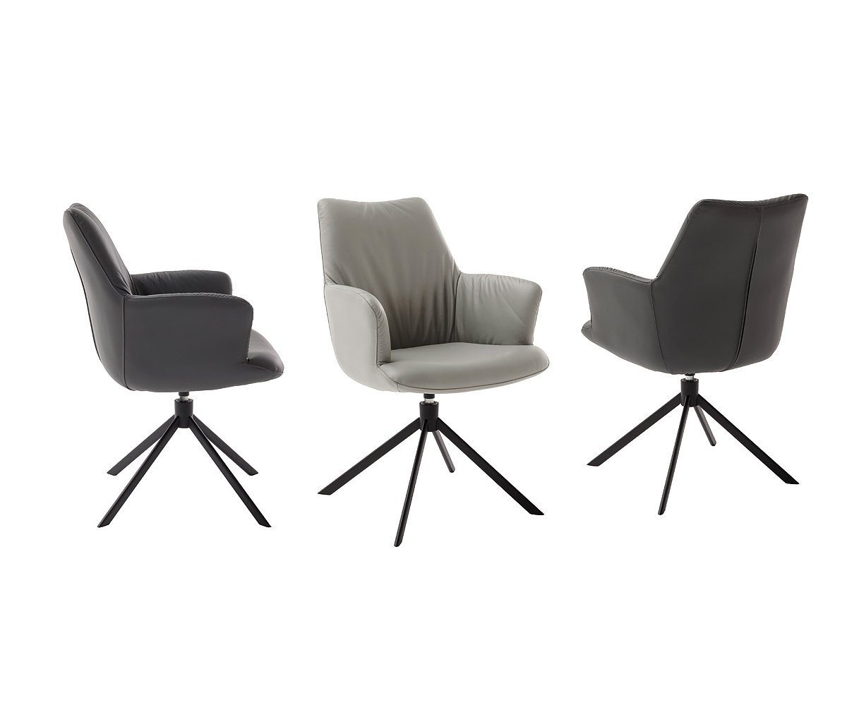 Díky otočnému mechanismu o 360° s automatickým návratem a houpací funkcí nabízí židle přirozený pohyb a maximální pohodlí. Stabilitu zaručuje kovová podnož z oválných, kuželovitých trubek v černém matném laku, která židli dodává moderní a elegantní charakter.