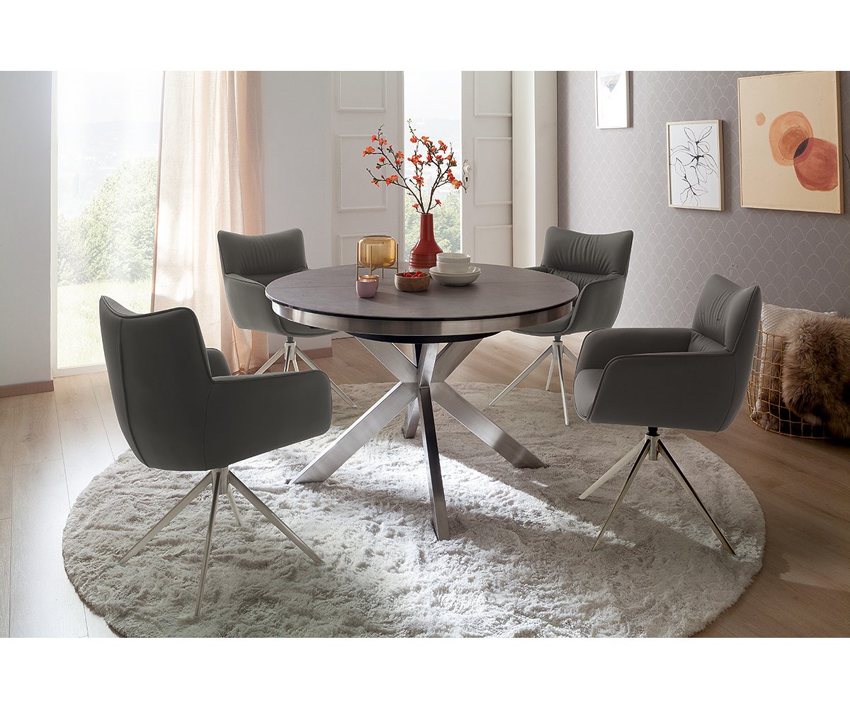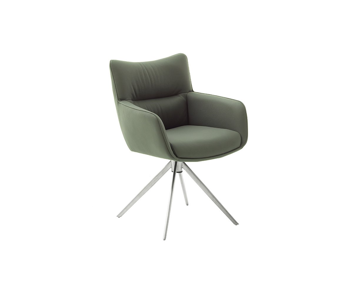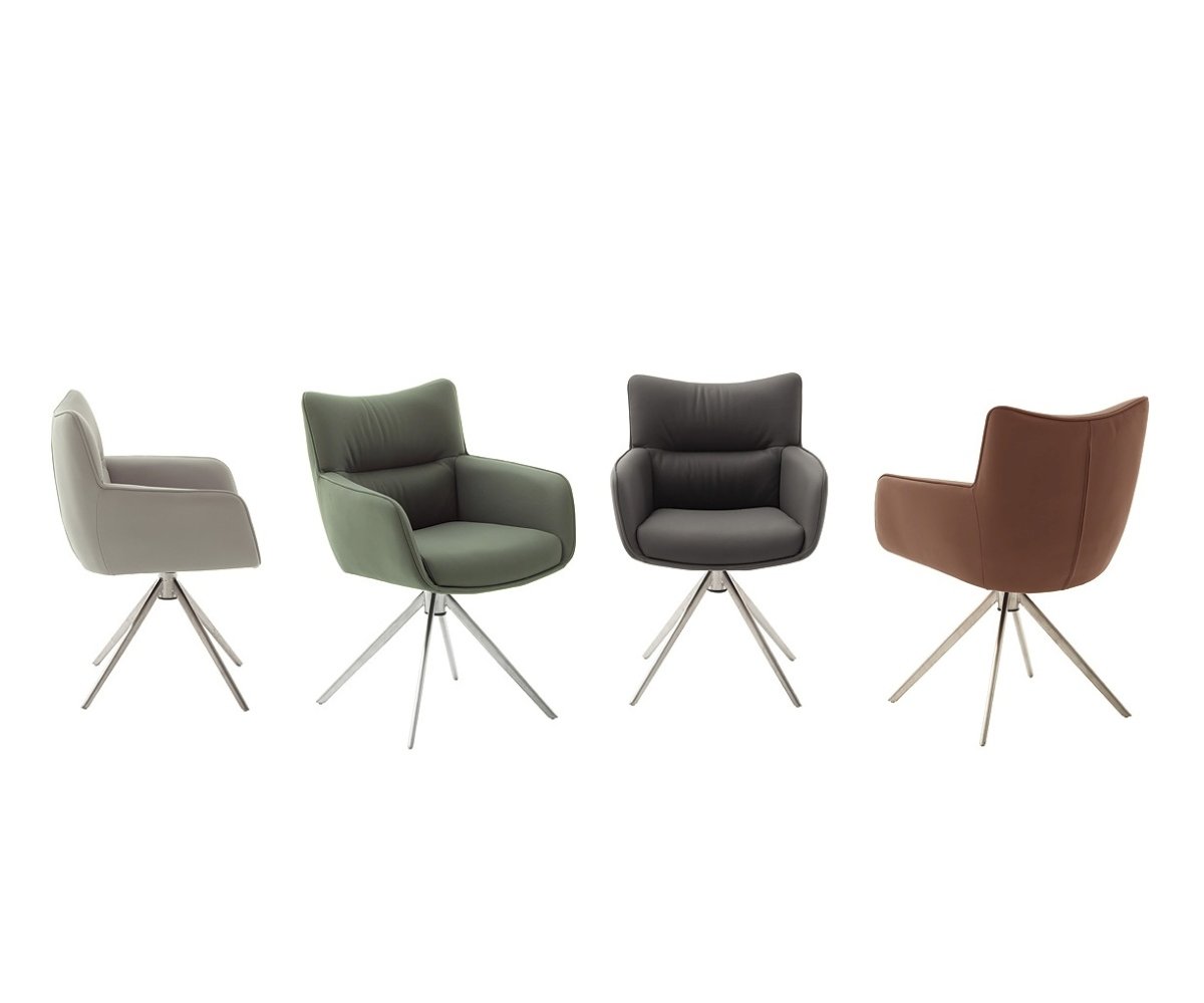 Jídelní židle LIMONE vyniká moderním designem, který spojuje eleganci s maximálním komfortem. Díky otočné funkci o 360° a automatickému vratnému mechanismu nabízí nejen praktické využití, ale i pohodlí při každodenním sezení. Čalounění z pravé kůže působí luxusně a zároveň je odolné vůči opotřebení. Podnož z kartáčované nerezové oceli dodává židli stabilitu a stylový vzhled, zatímco sedák s integrovanými kapesními pružinami se postará o výjimečný komfort i při delším sezení. LIMONE je tak ideální volbou pro moderní jídelny, kde se snoubí design, kvalita a pohodlí.