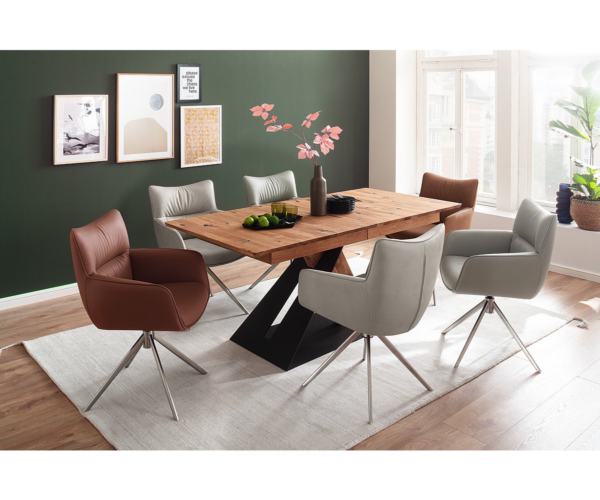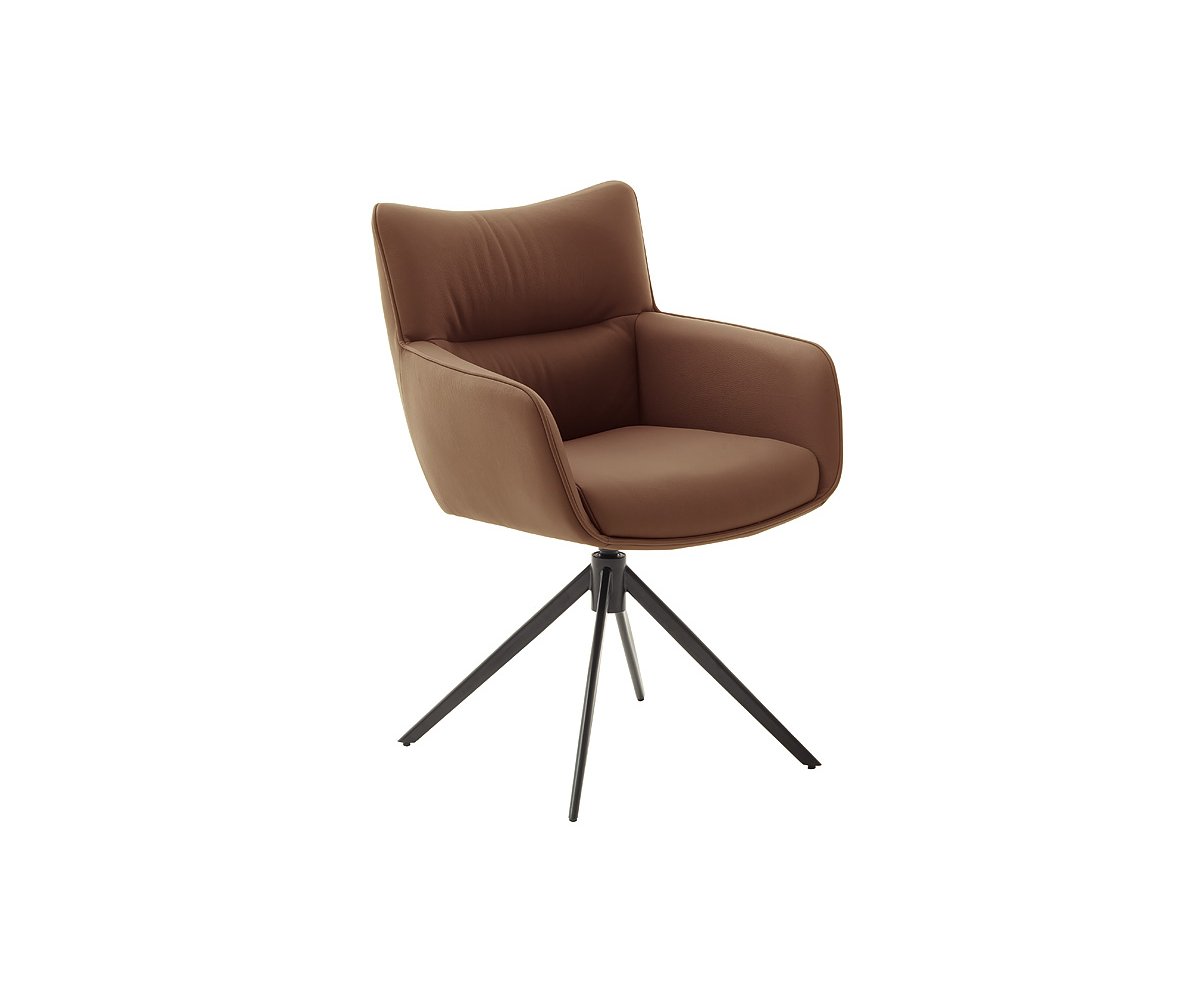 Jídelní otočná židle LIMONE 2S s područkami, pravá kůže hnědočervená