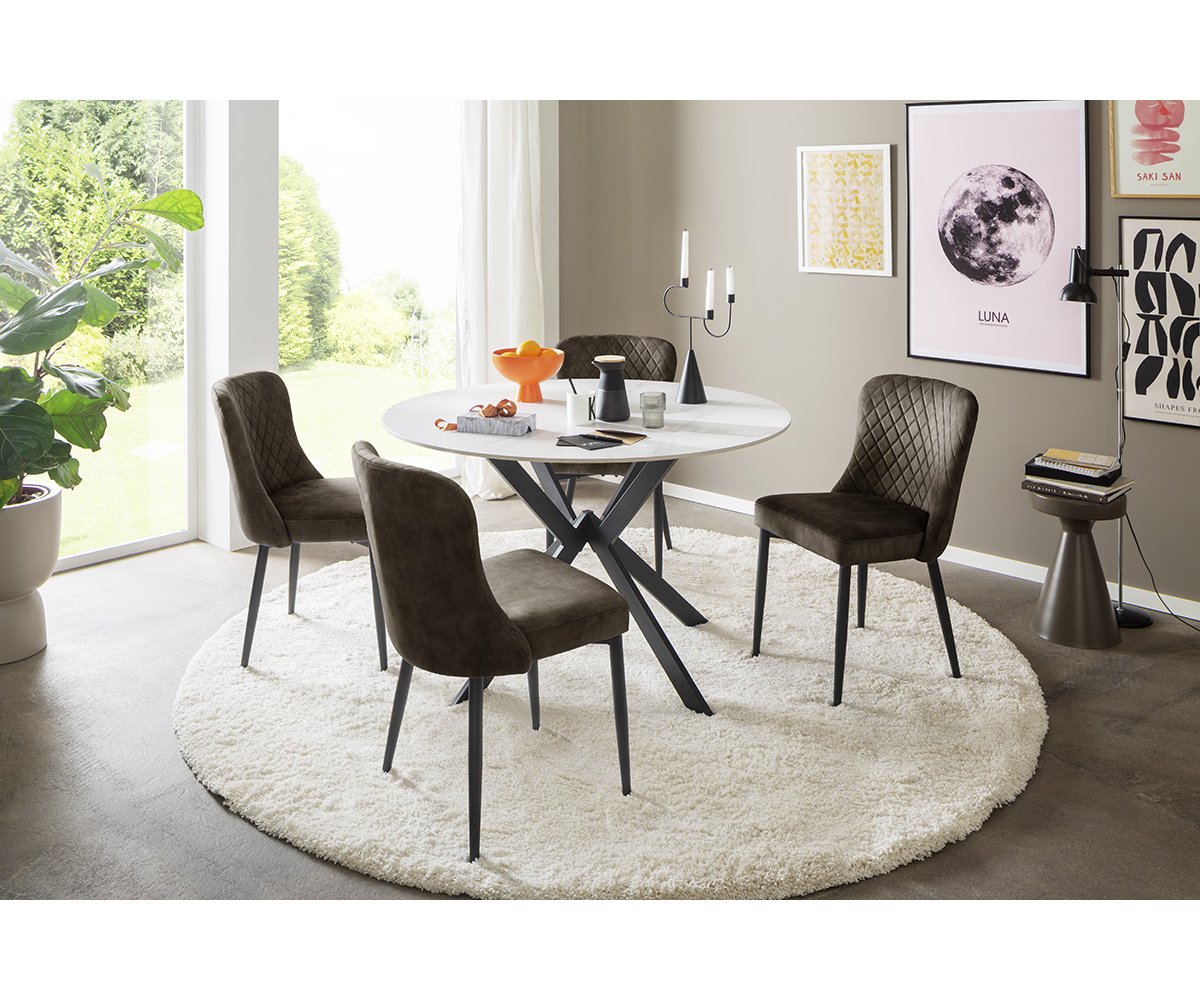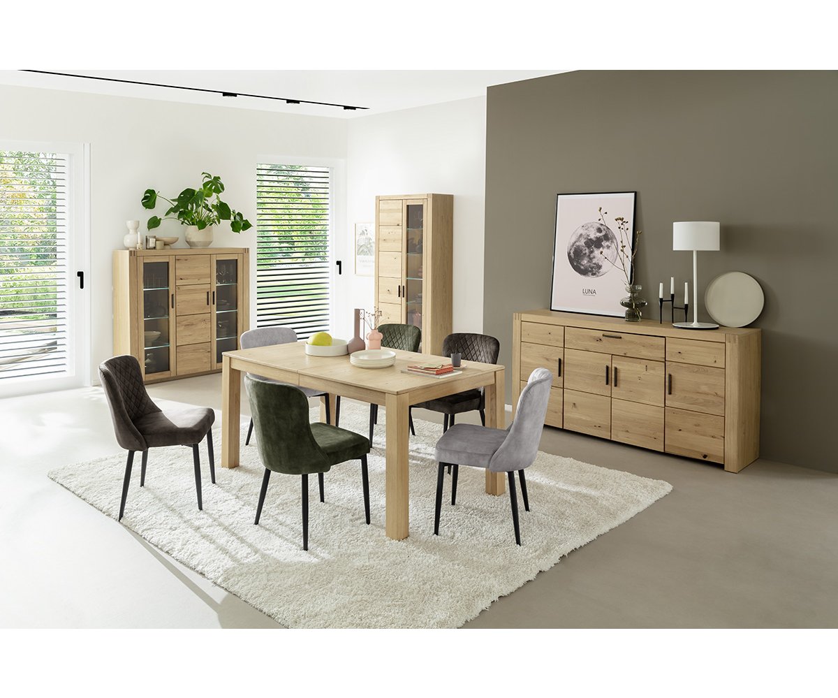 Židle je čalouněná sametově hebkou látkou s velurovým vzhledem (100 % polyester), která působí luxusně, je odolná vůči každodennímu používání a zároveň se snadno udržuje. O vaše maximální pohodlí se postará luxusní komfortní sedák s taštičkovým pružinovým jádrem, které zajišťuje dlouhou životnost a výjimečně pohodlné sezení i při delším stolování.