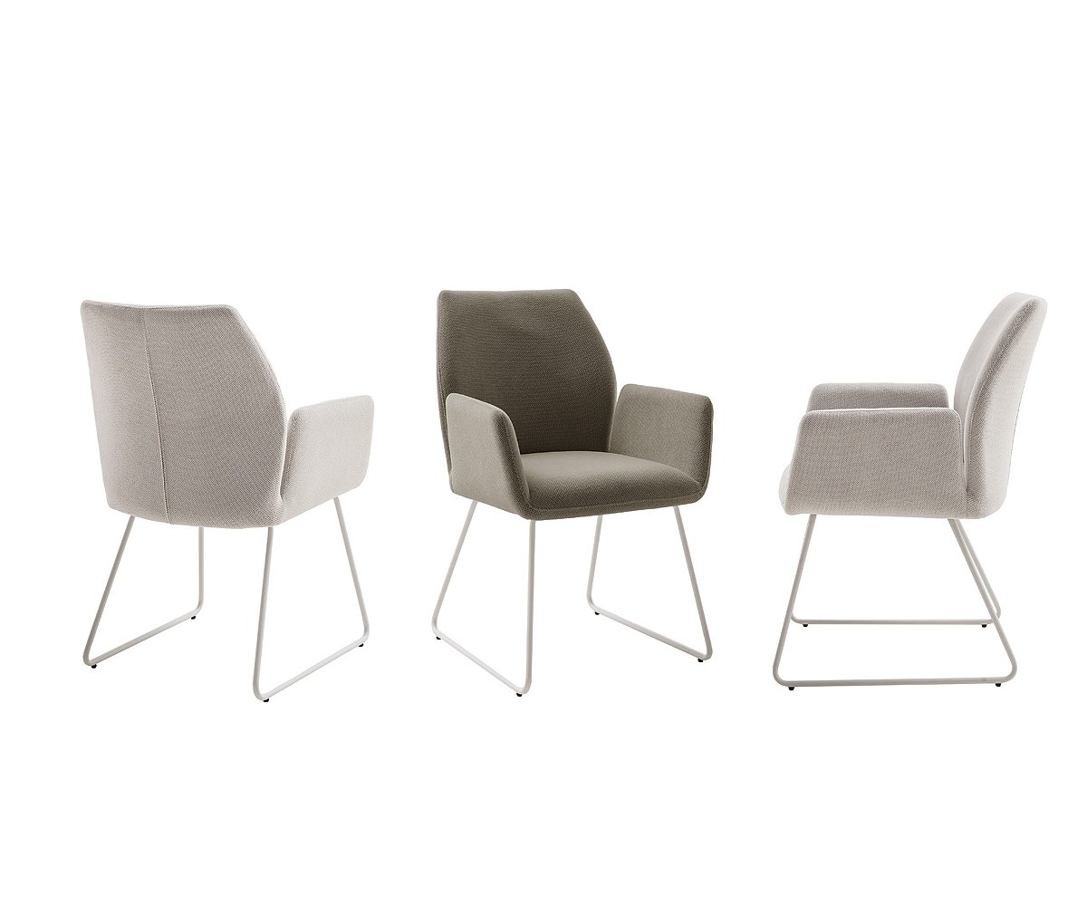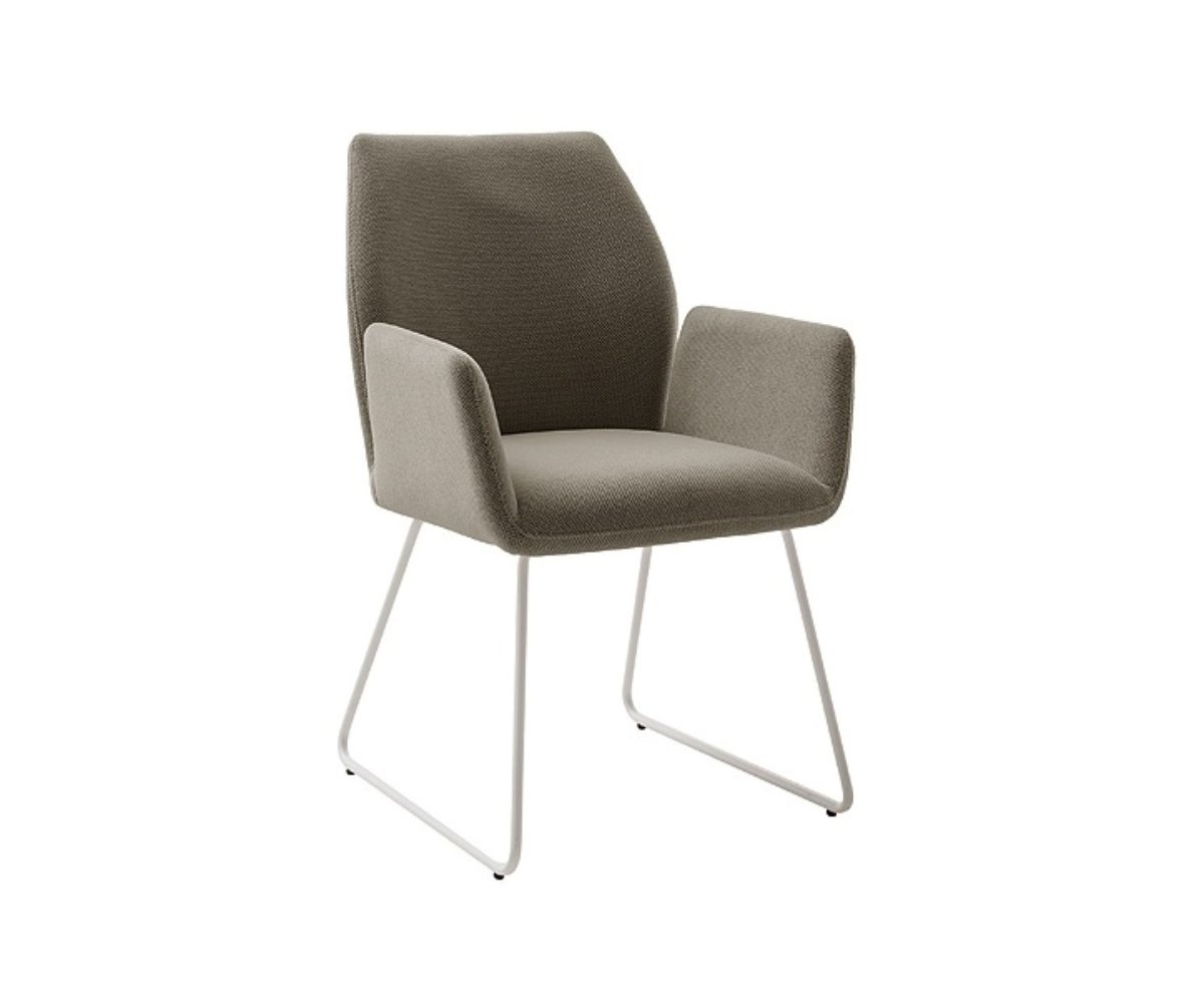 Židle disponuje ergonomicky tvarovaným sedákem s integrovanými područkami a vyšším opěrákem typu B, který poskytuje dokonalou oporu zad a příjemné pohodlí i při delším sezení. Je čalouněná látkou v chenille vzhledu (92 % polyester, 8 % nylon), která je hebká na dotek, odolná a snadno se udržuje.