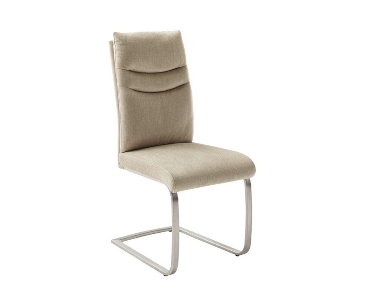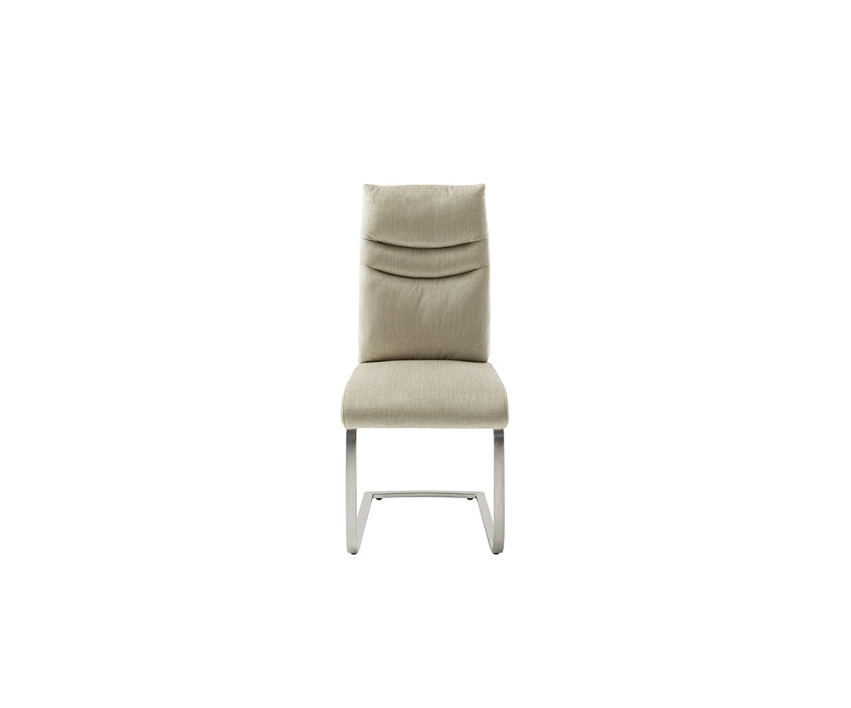 Pohodlné sezení zajišťuje Nosag pružinové odpružení v sedáku, které nabízí příjemnou měkkost a dlouhodobý komfort při sezení. Stabilní kovová podnož z plochých trubek z kartáčované nerezové oceli vytváří elegantní kontrast k čalounění a poskytuje židli pevnost i lehký houpací efekt, typický pro cantilever konstrukci.