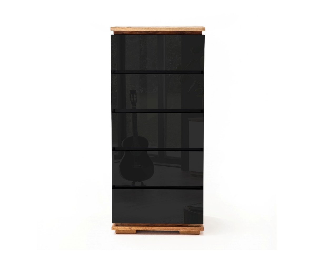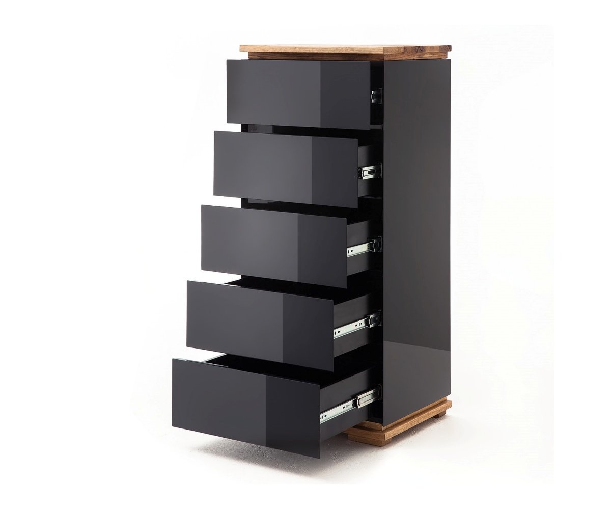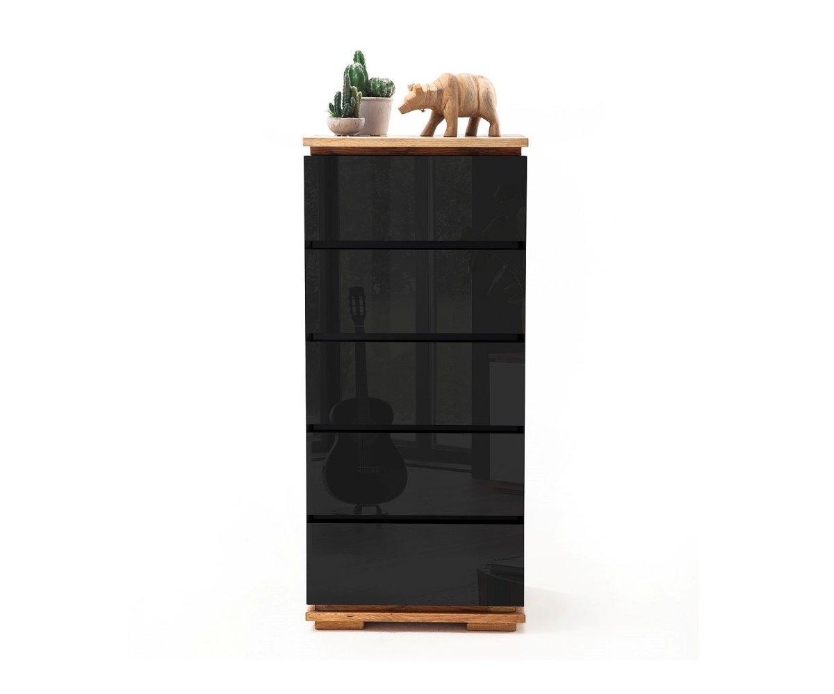 Komoda CHIARO s 5 zásuvkami představuje elegantní a praktické řešení úložného prostoru pro moderní interiér. Štíhlé proporce vysoké komody v kombinaci s kvalitními materiály a precizním zpracováním z ní činí nadčasový kus nábytku vhodný do obývacího pokoje, ložnice i předsíně.