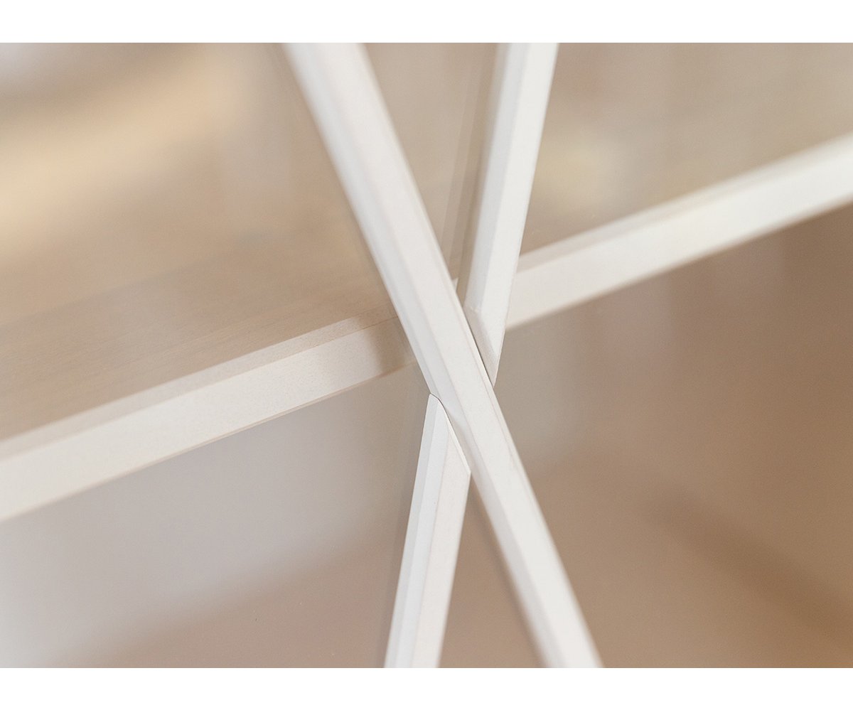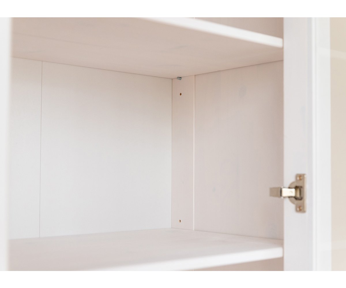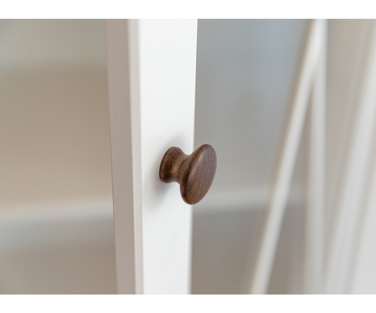 • Skleněná dvířka s ozdobnou příčkou ve tvaru kříže působí stylově a zároveň chrání vystavené předměty před prachem.