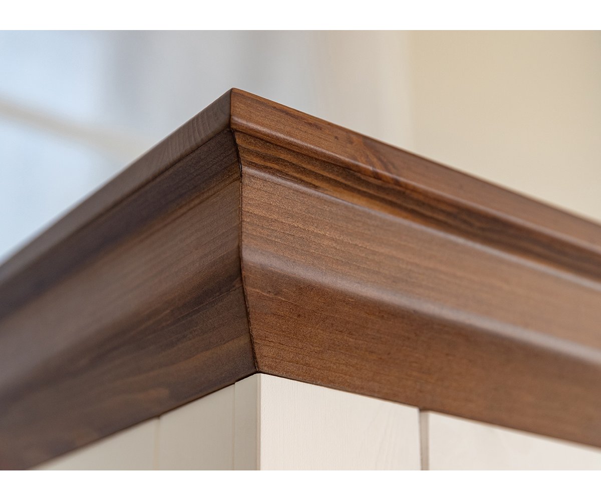 • Horní deska z masivní finské borovice v barvě tabáku dodává teplý přírodní kontrast.