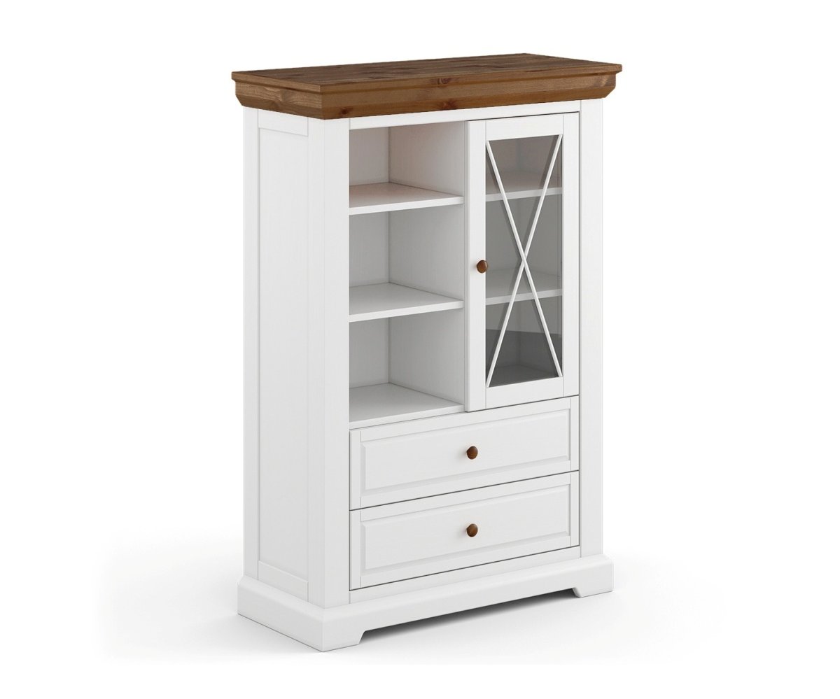 Komoda s vitrínou (typ 04) RONE borovice masiv bílá/tabák