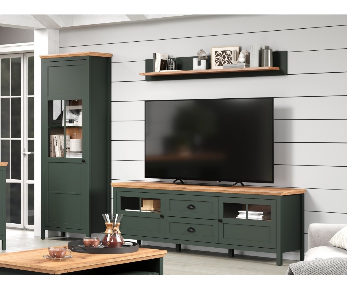Police do obývacího pokoje STANTON (typ 220948104) tmavě zelená/dub Evoke