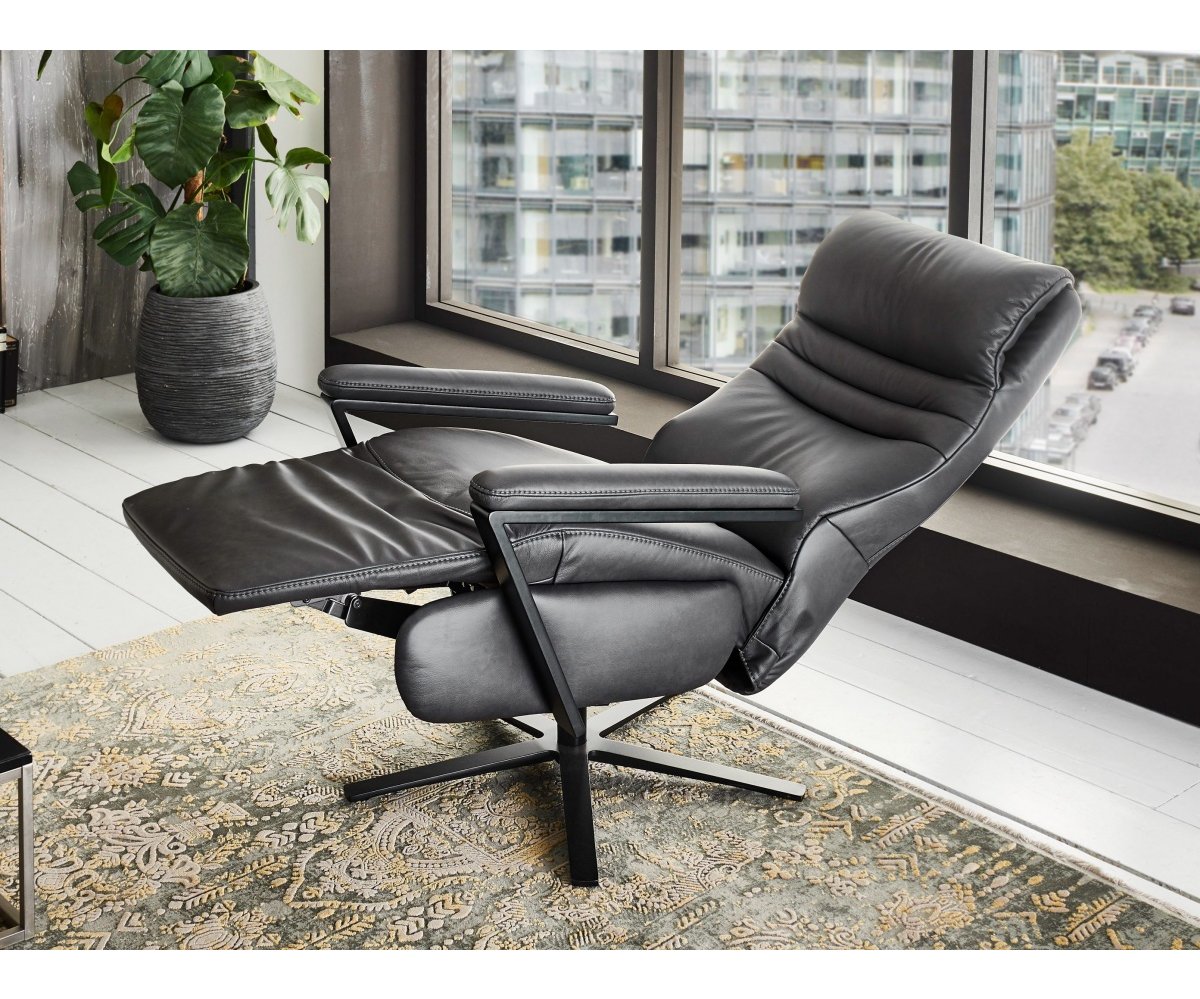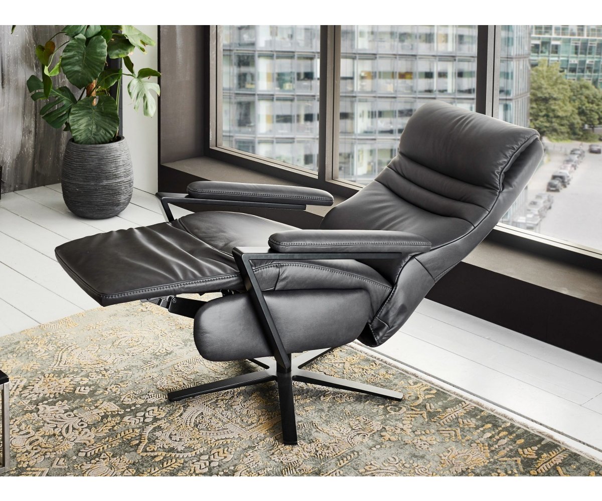 Kožené otočné televizní křeslo TRAPANI s polohováním pro relax a odpočinek, které si můžete zakoupit ve variantě s mechanickým, elektrickým polohováním nebo elektrickým polohováním s kardiováhou vybaveným dálkovým ovladačem. Poslední variantou je pak polohování elektrické s kardiováhou včetně asistence vstávání - je určeno pro seniory nebo osoby s omezenou pohyblivostí. Funkce relax umožňuje nezávislou manipulaci opěráku a podnožky - nastavení do ideální polohy. Dokonalý komfort sezení zajistí příjemně tvarovaná opěrka hlavy.