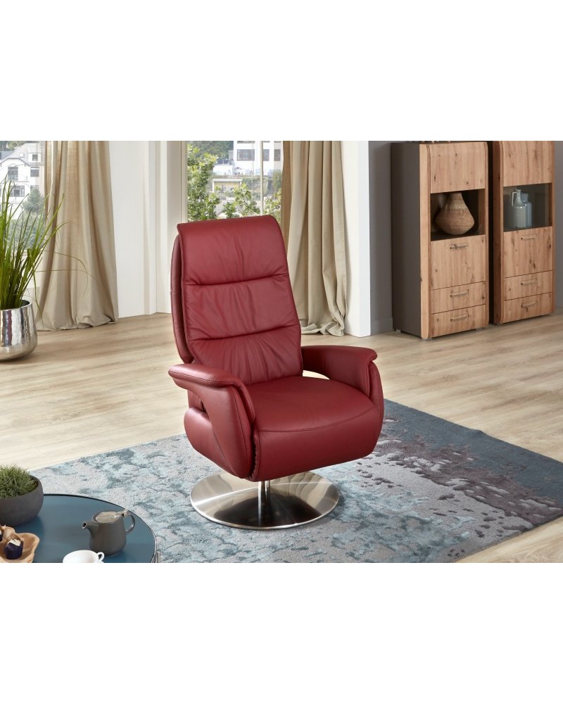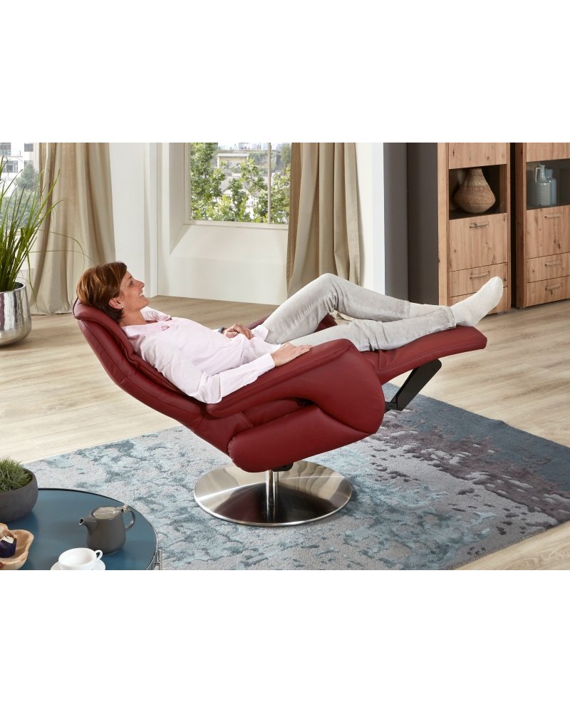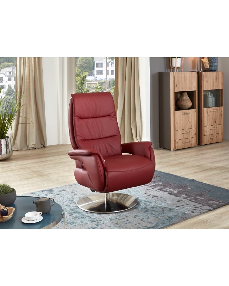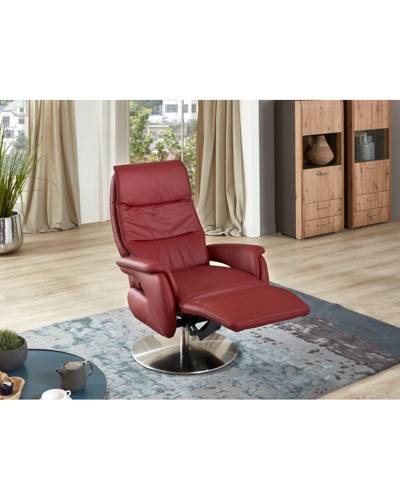 Kožené otočné televizní křeslo ISABELLA s polohováním pro relax a odpočinek, které si můžete zakoupit ve variantě s mechanickým polohováním, elektrickým polohováním vybavené dálkovým ovladačem nebo elektrickým polohováním s kardiováhou. Poslední variantou je pak polohování elektrické včetně asistence vstávání - je určeno pro seniory nebo osoby s omezenou pohyblivostí. Funkce relax umožňuje nezávislou manipulaci opěráku a podnožky - nastavení do ideální polohy. Dokonalý komfort sezení zajistí příjemně tvarované područky.