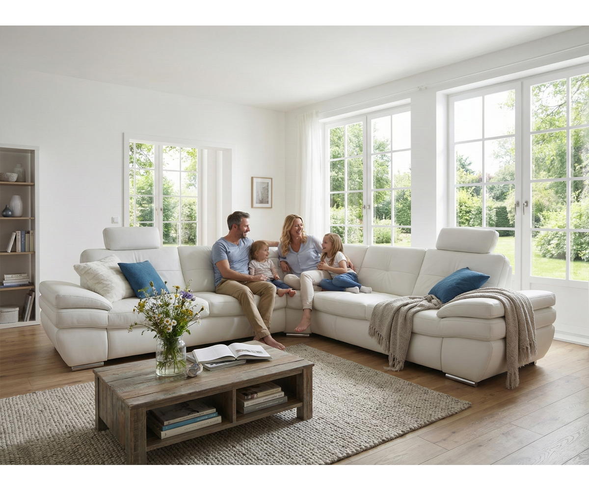 Moderní kožená sedací souprava pro náročné zákazníky, která se vyznačuje precizním zpracováním a kvalitou použitých materiálů. Výplně sedáků ze studené pěny a perfektní tvarování opěrové části zaručují velice příjemné sezení, které je navíc podpořeno vyšším sezením (46 cm) a dvěmi záhlavníky pro komfortní odpočinek.