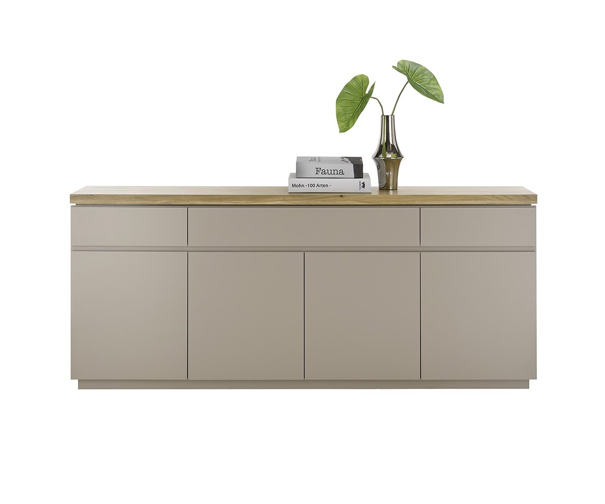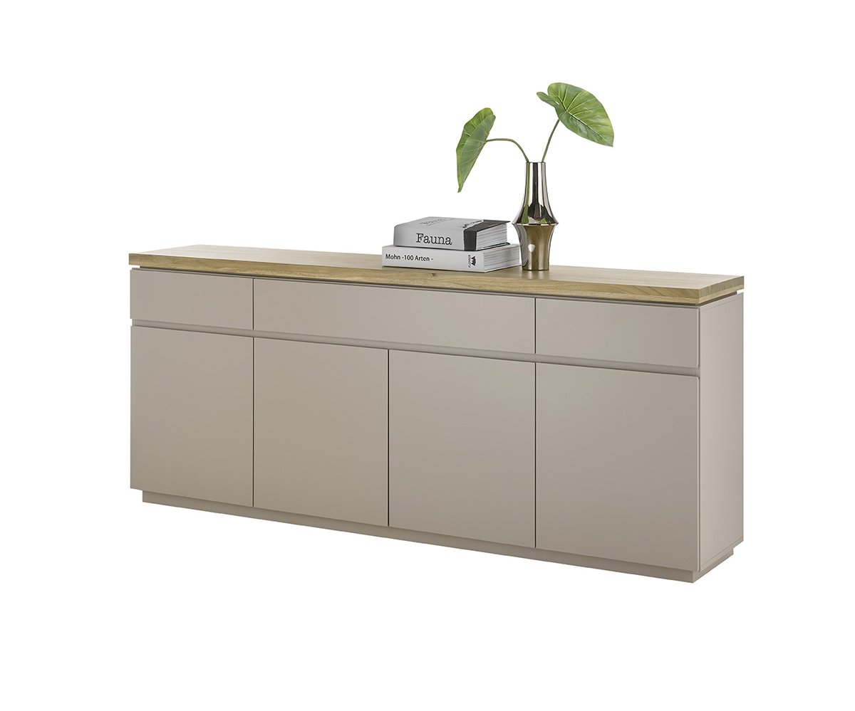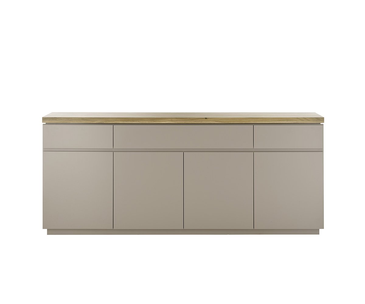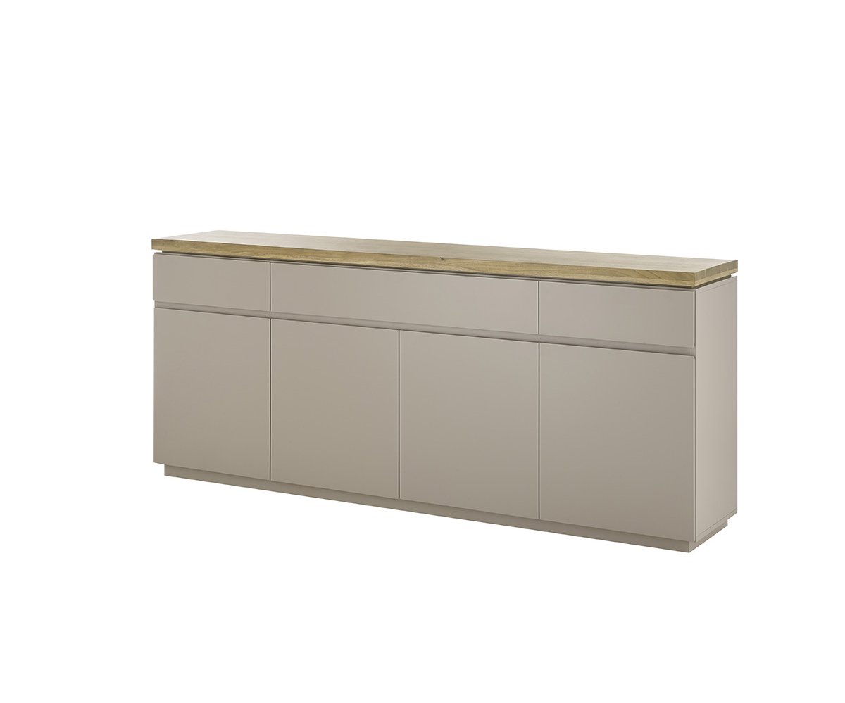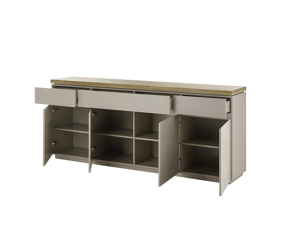 Komoda 4dveřová se 3 zásuvkami Velkorysá komoda ideální pro uložení nádobí, textilií i drobností. Kombinace dvířek a zásuvek zajišťuje maximální přehlednost. Rozměry: šířka 200 cm, výška 86 cm, hloubka 40 cm