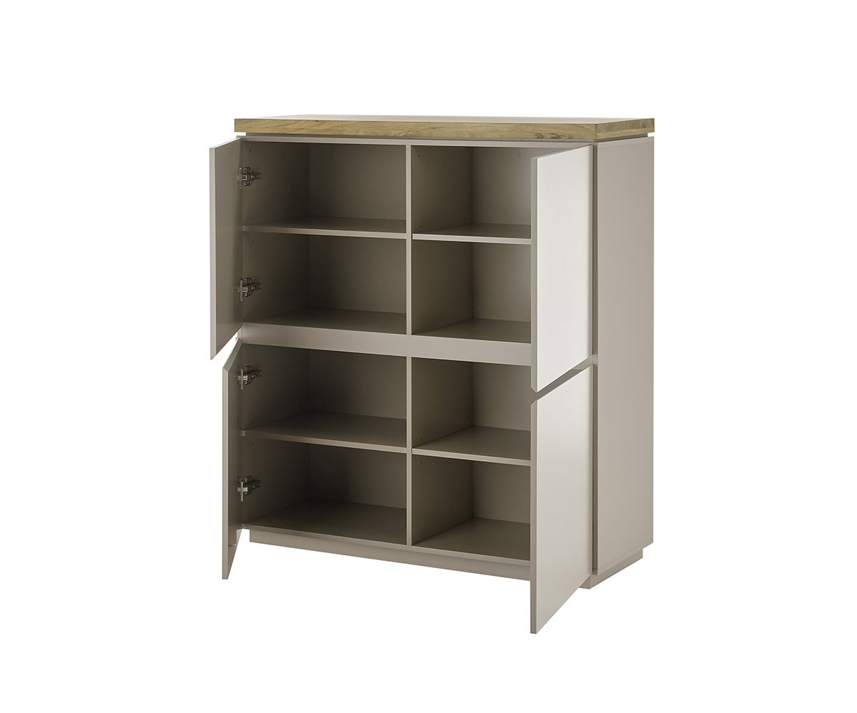 Komoda 4dveřová Vysoká komoda s čistým designem, která poskytne dostatek úložného prostoru bez narušení vzdušnosti interiéru. Rozměry: šířka 113 cm, výška 123 cm, hloubka 40 cm