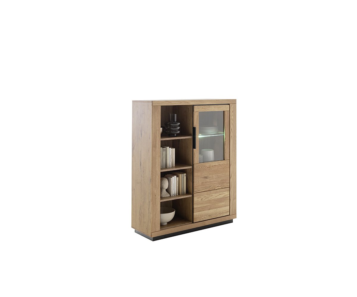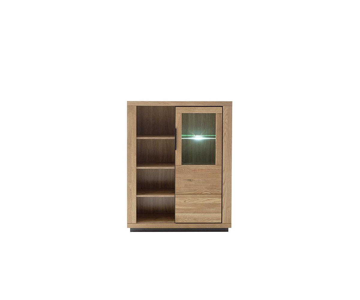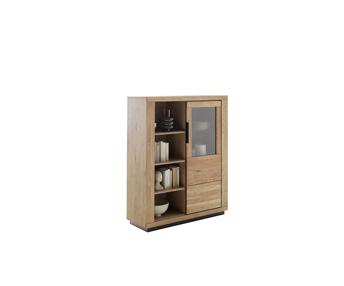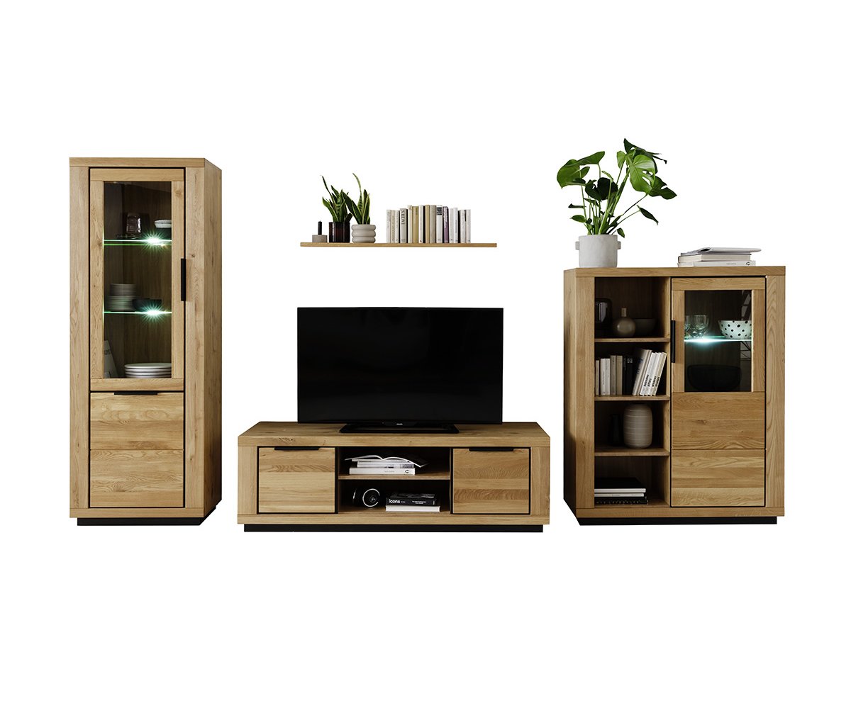 Obývací sestava GRENO představuje harmonické spojení moderního designu a přirozené krásy masivního dubu olejovaného. Čela z masivního dřeva vynikají autentickou kresbou, která činí každý kus nábytku originálem. Korpusy v dekoru dubu ladí s masivními prvky a podtrhují jednotný vzhled celé kolekce.