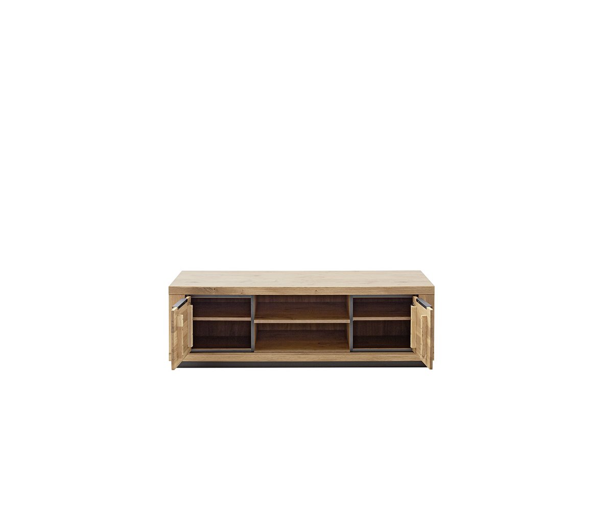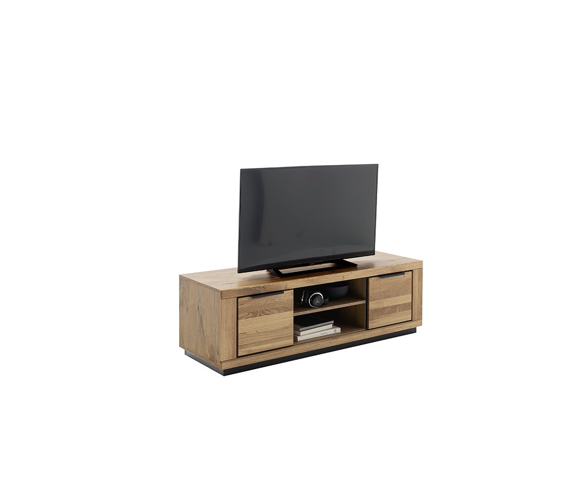 GRE14T31 – TV skříňka velká, 2dveřová Rozměry: 163 × 40 × 52 cm (š × h × v) Korpus v dekoru dubu, čela z masivního dubu olejovaného