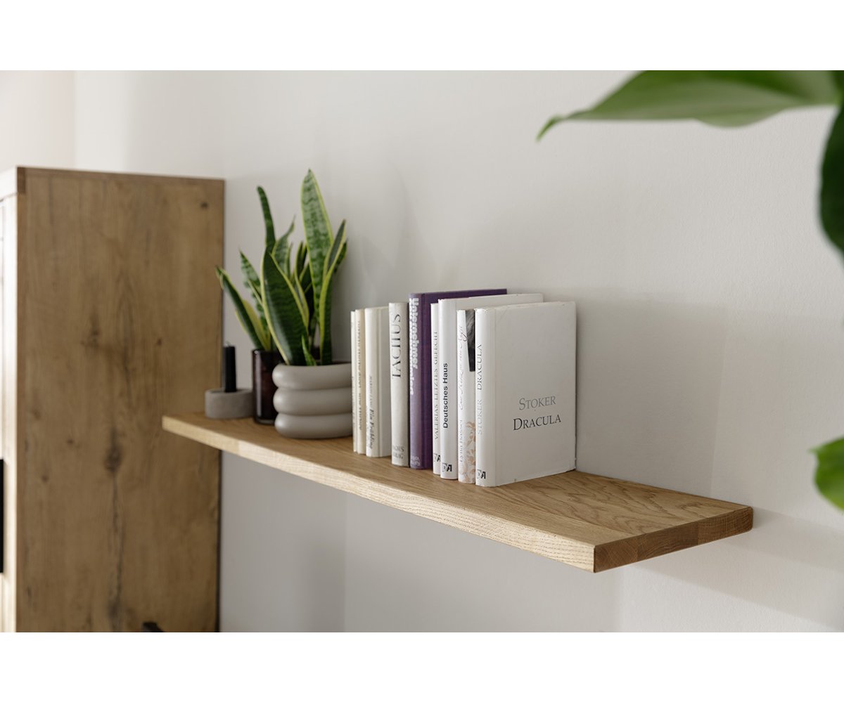 GRE14T50 – Nástěnná police Rozměry: 110 × 20 × 3 cm (š × h × v) Masivní dub olejovaný