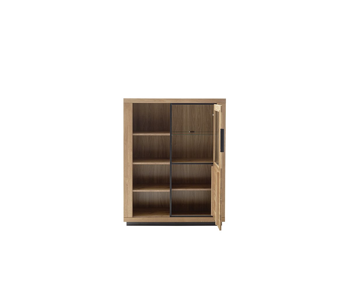 Sestava nabízí prakticky řešený úložný prostor v podobě kredence, vitríny i TV skříňky doplněnou nástěnnou policí. Díky nadčasovému pojetí se hodí jak do moderních, tak i klasicky laděných interiérů.