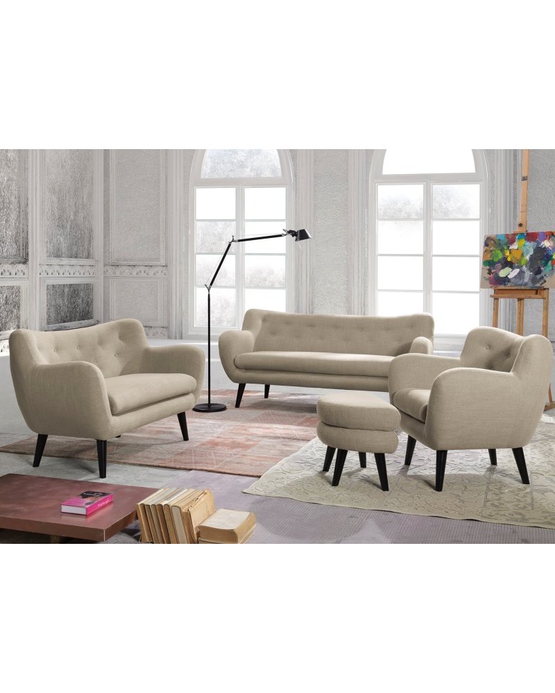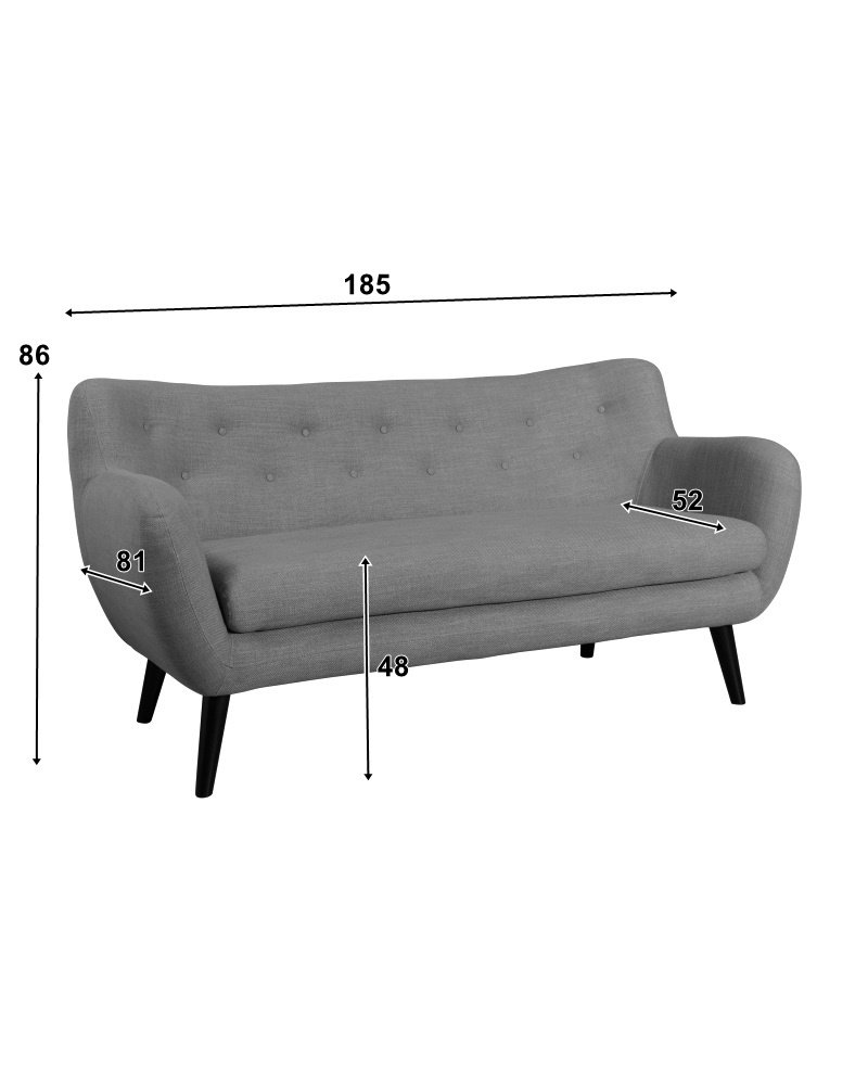 Moderní třímístná pohovka ve skandinávském designu skvěle oživí Váš obývací interiér či pracovnu. Nápaditý design umocňuje prošívaný opěrák pokrytý malými knoflíky.