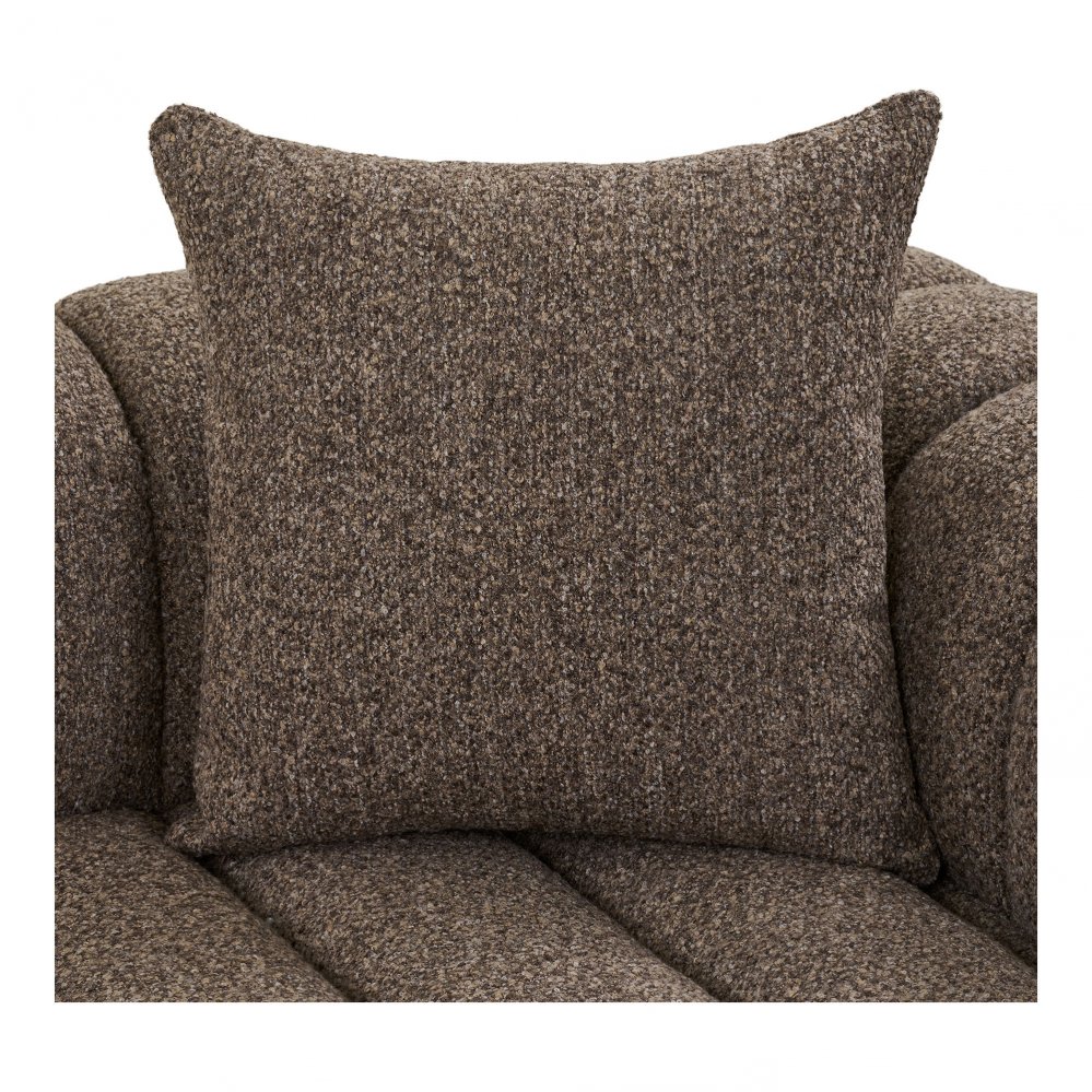 Pohovka Aurora Lounge je výrazný kus designového nábytku, který kombinuje prostorné a pohodlné posezení s moderním skandinávským vzhledem vhodným do velkých obývacích pokojů nebo relaxačních zón. Elegantní hnědý bouclé potah dodává příjemný vizuální dojem a měkký povrch pro každodenní komfort. Rohové provedení s pravoúhlým tvarem poskytuje dostatek prostoru pro sezení více osob a vytváří centrální bod interiéru, který harmonicky doplní moderní styl.