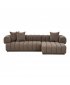 Tato rohová pohovka je ideální pro prostorné obývací pokoje, kde je žádoucí vytvořit centrální relaxační zónu. Hnědý bouclé potah ladí s teplými přírodními tóny i s moderními minimalistickými interiéry a vytváří pocit útulnosti. Aurora Lounge lze efektivně kombinovat s konferenčním stolkem v přírodních materiálech nebo s doplňky v neutrálních barvách pro ucelený skandinávský vzhled interiéru.