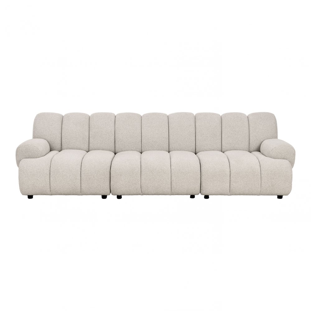 Díky svým rozměrům je pohovka ideální do prostornějších obývacích pokojů, moderních interiérů i otevřených obytných prostor. Neutrální odstín sand se výborně hodí ke skandinávskému, minimalistickému i současnému stylu bydlení a snadno se kombinuje s přírodními materiály, dřevem nebo kovovými prvky.