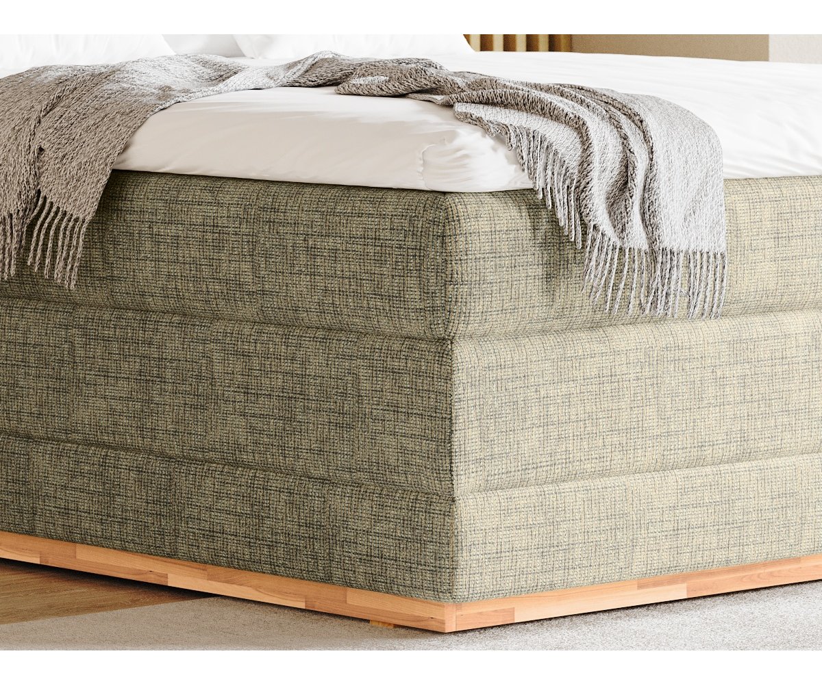 Kvalitní postel boxspring včetně luxusní 7-zónové taštičkové matrace promění ranní vstávání v radost, která Vás bude provázet po celý den. U postele oceníte vysoký komfort ležení a nadstandardní výšku spaní. Příjemně měkké designové čelo v dřevěném rámu přidává přírodní a luxusní dotek do ložnice.