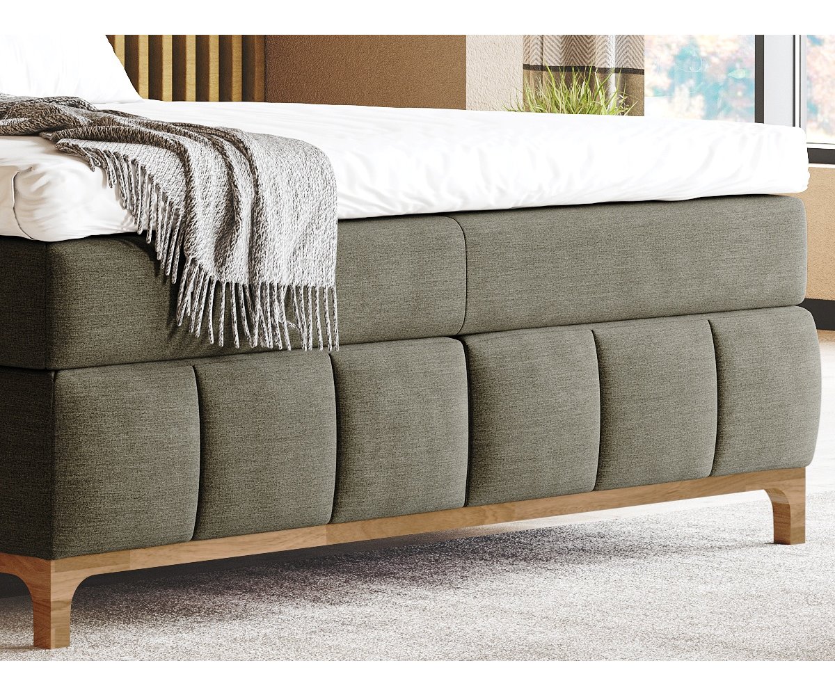 Kvalitní postel boxspring s úložným prostorem včetně luxusní 7-zónové taštičkové matrace promění ranní vstávání v radost, která Vás bude provázet po celý den. U postele oceníte kromě vysokého komfortu ležení a nadstandardní výšky spaní také vyšší nožičky. Příjemně měkké prošívané čelo je vybaveno relaxačním polohovacím mechanismem - ideální pro čtení nebo sledování televize.