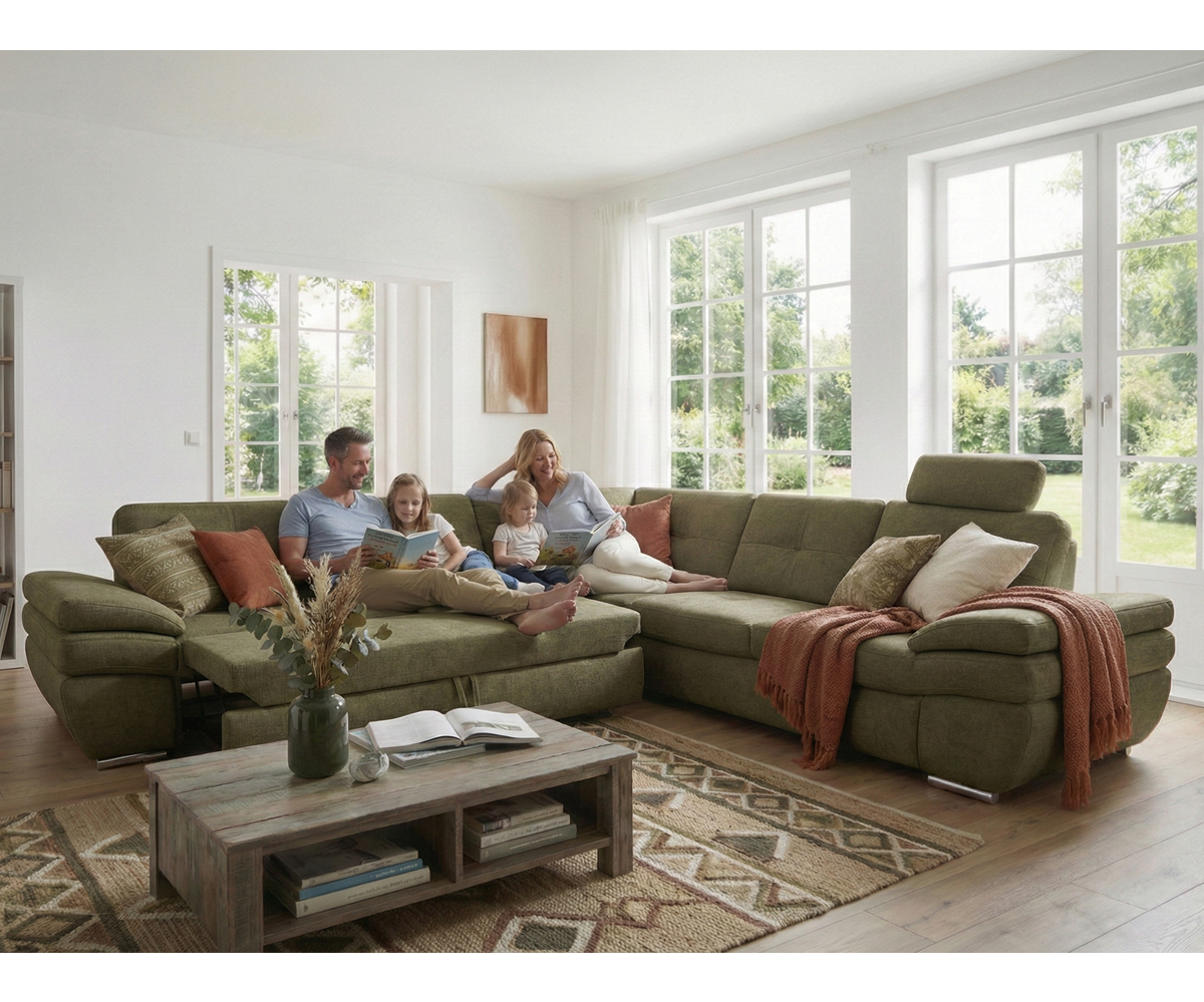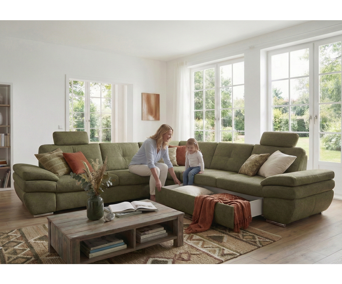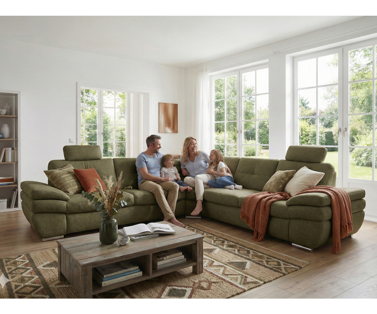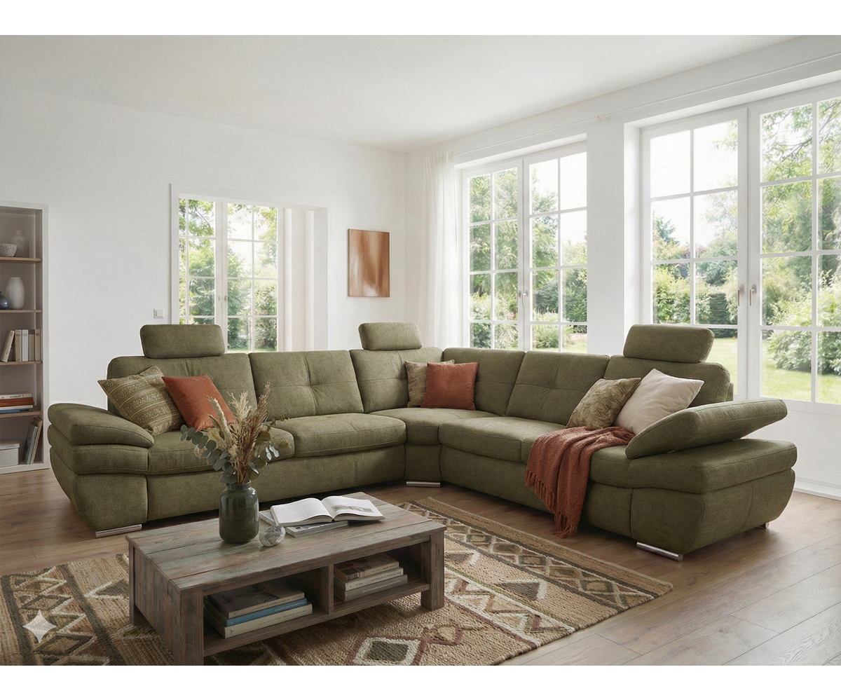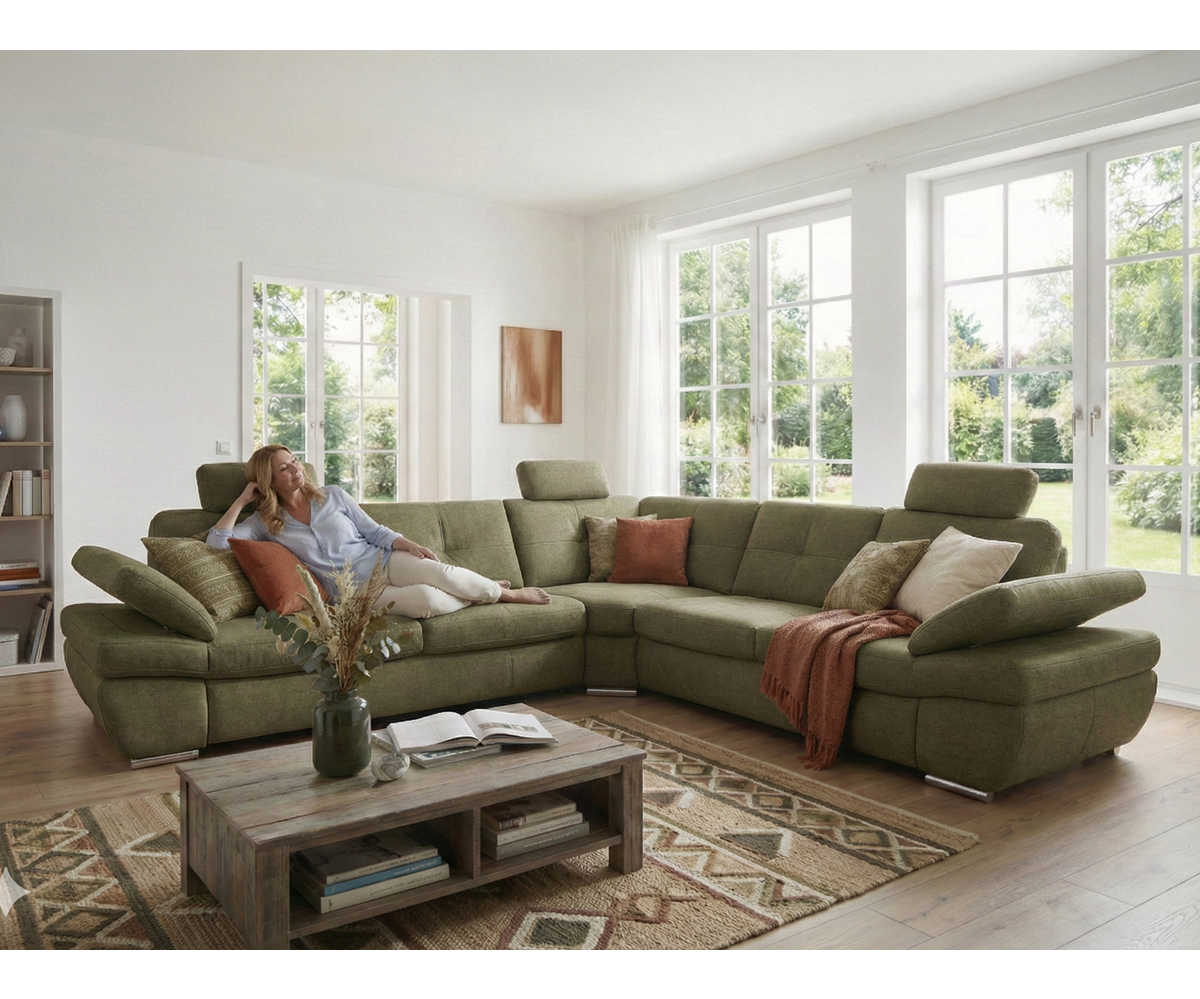 Moderní rohová sedací souprava pro náročné zákazníky, která se vyznačuje precizním zpracováním a kvalitou použitých materiálů. Výplně sedáků ze studené pěny a perfektní tvarování opěrové části zaručují velice příjemné sezení, které je navíc podpořeno vyšším sezením (46 cm) a záhlavníky pro komfortní odpočinek.