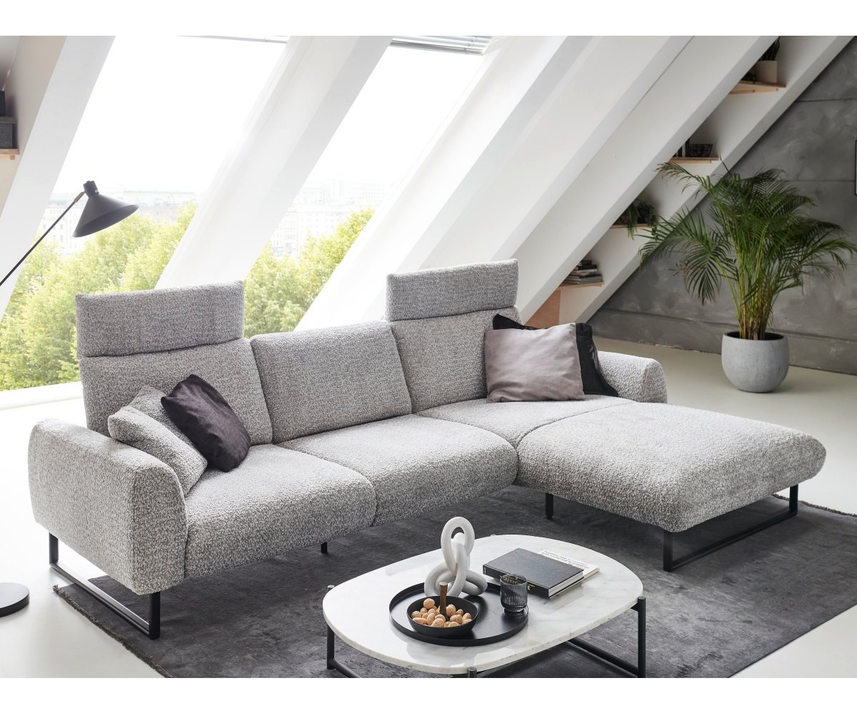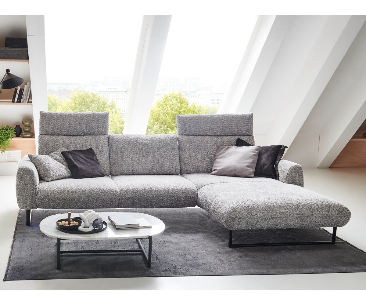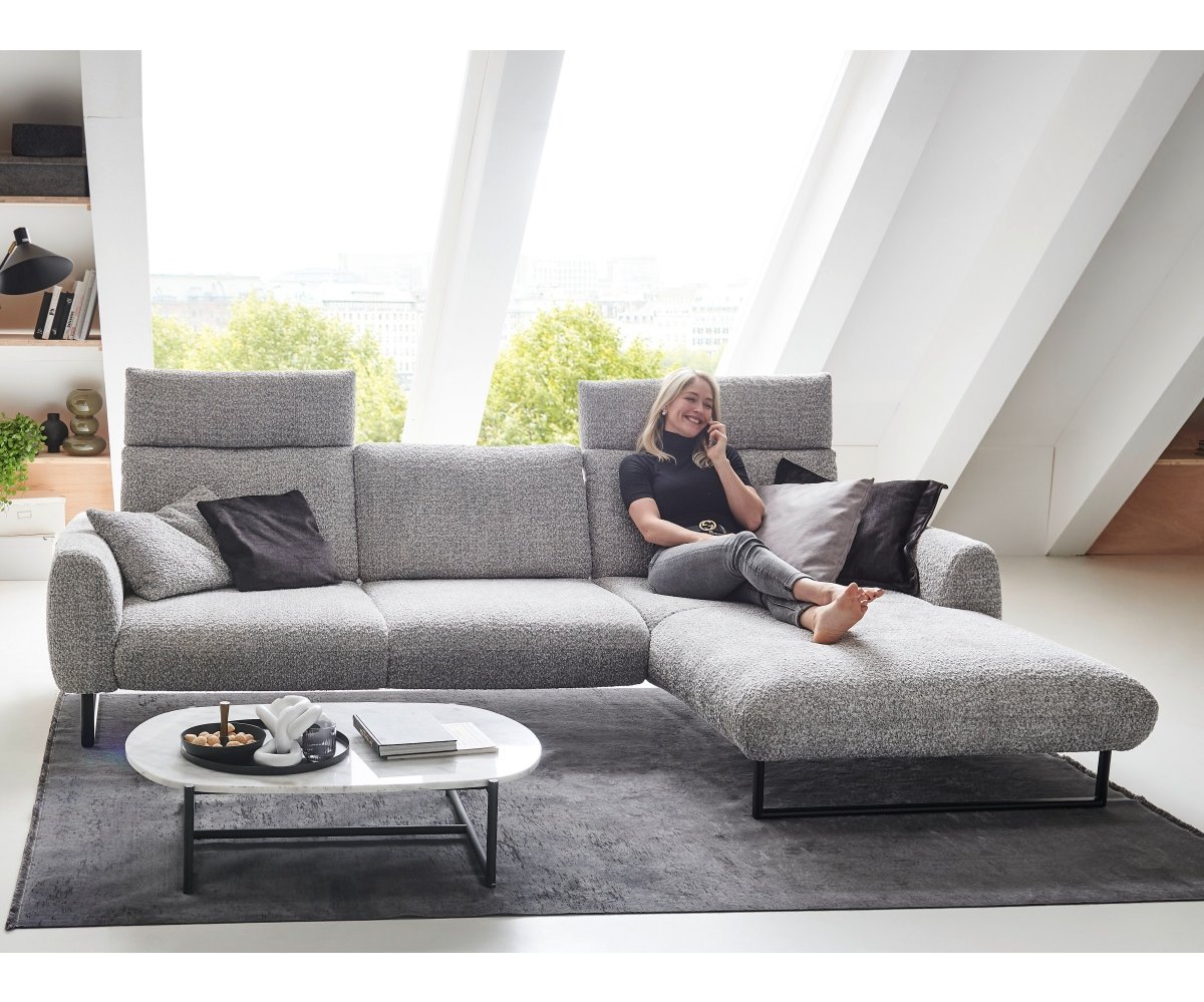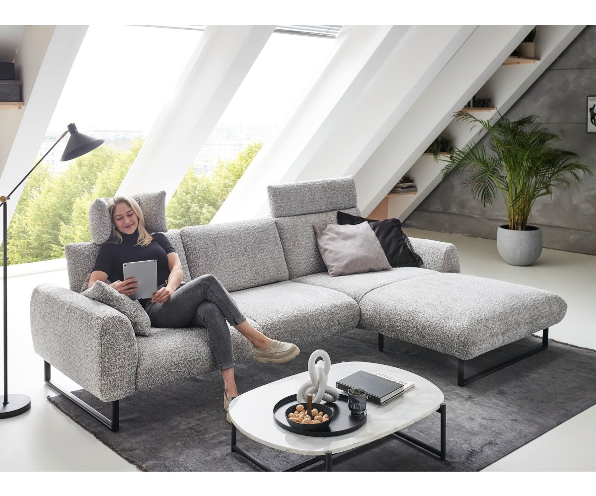 Sedačka je posazena na designových kovových lyžinách v černé barvě, které jsou již zahrnuty v základní ceně. Ty dodávají celému kusu nábytku industriální a zároveň velmi vzdušný ráz, díky čemuž prostor opticky nezatíží a usnadní úklid (například i robotickým vysavačem).