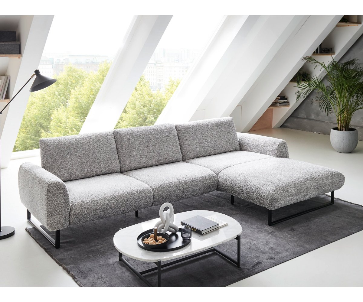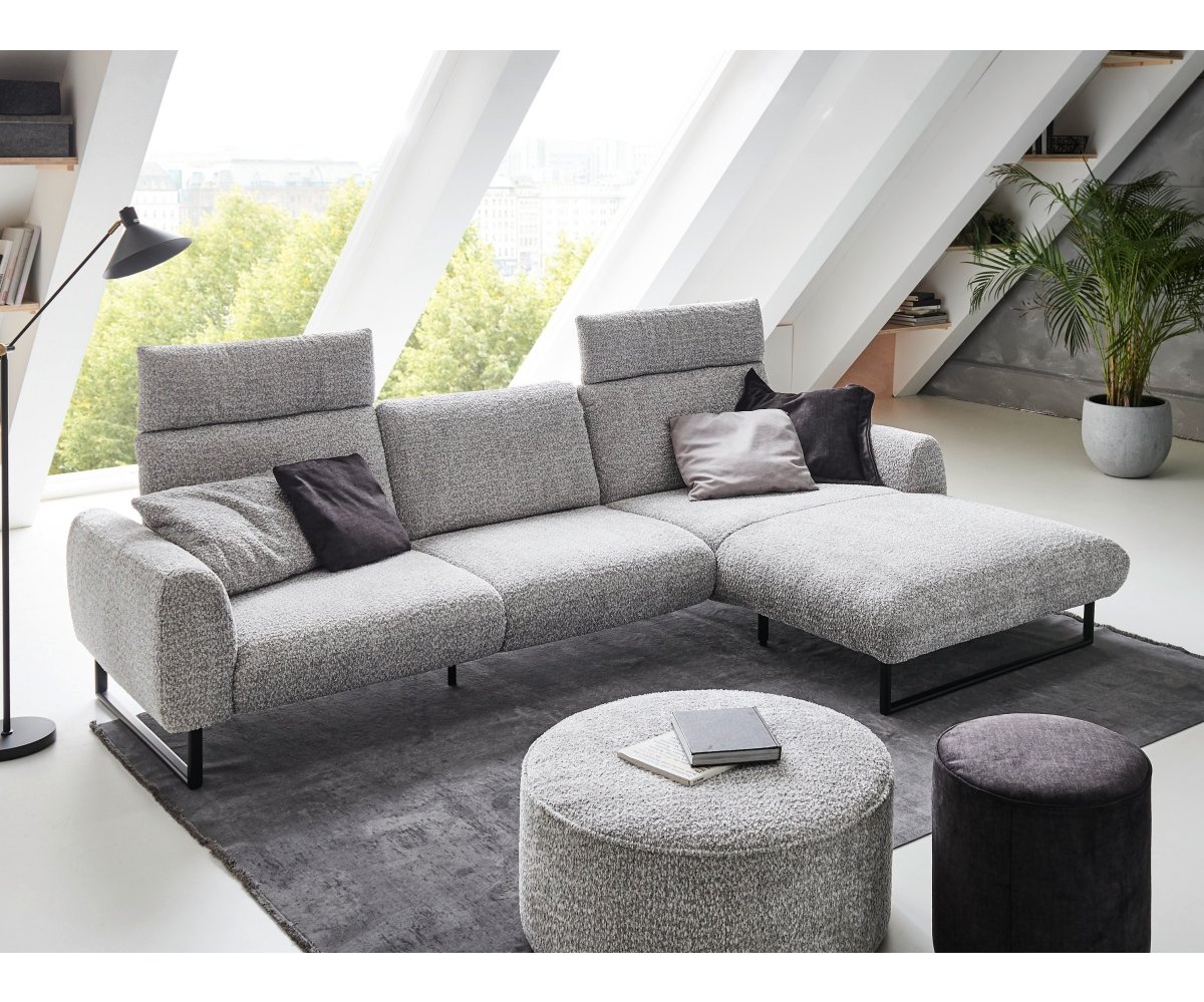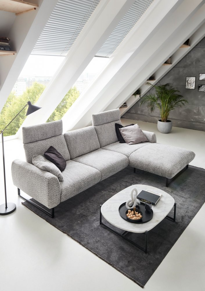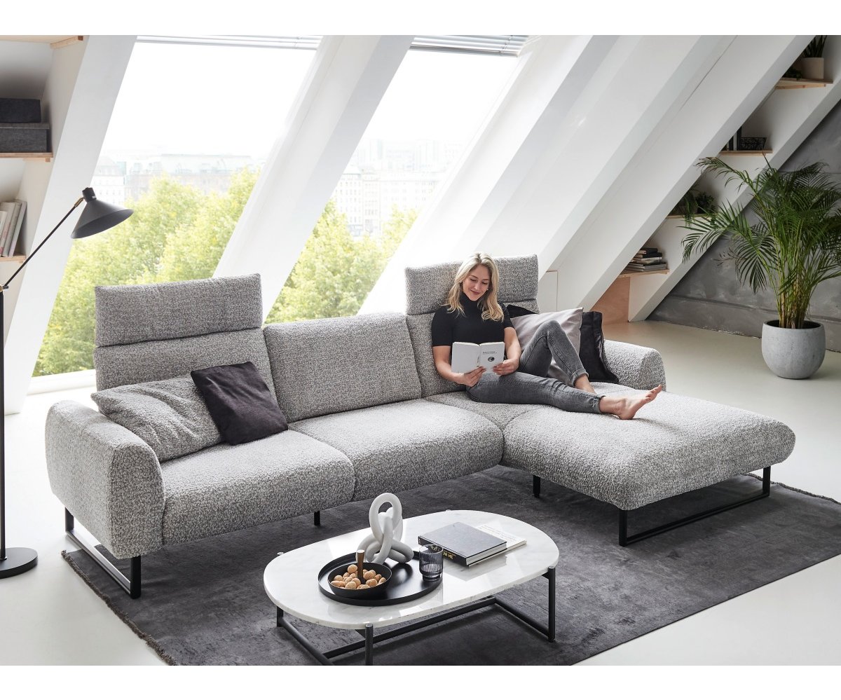Sedačka je posazena na designových kovových lyžinách v černé barvě, které jsou již zahrnuty v základní ceně. Ty dodávají celému kusu nábytku industriální a zároveň velmi vzdušný ráz, díky čemuž prostor opticky nezatíží a usnadní úklid (například i robotickým vysavačem).