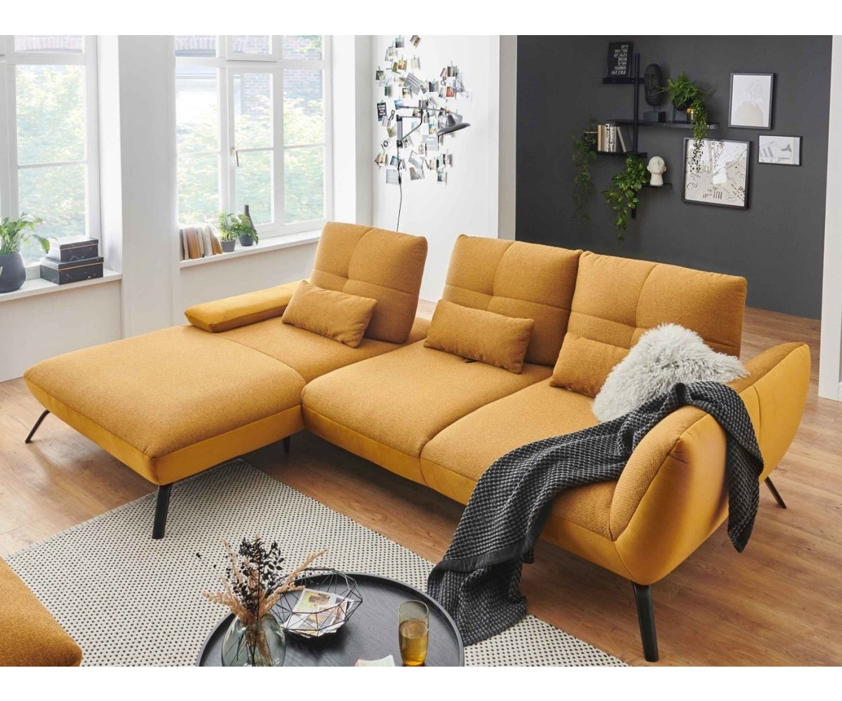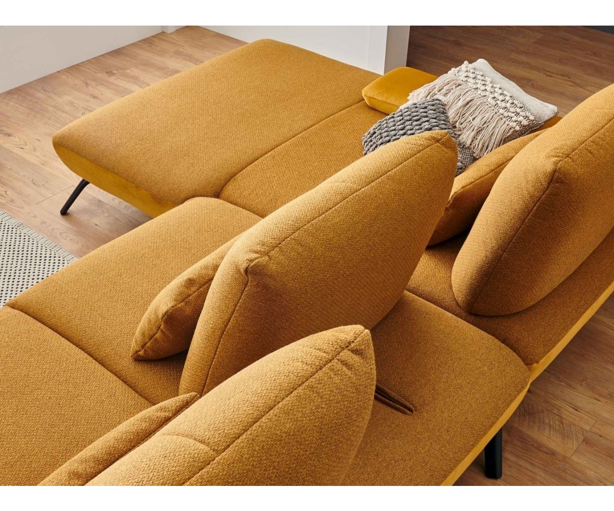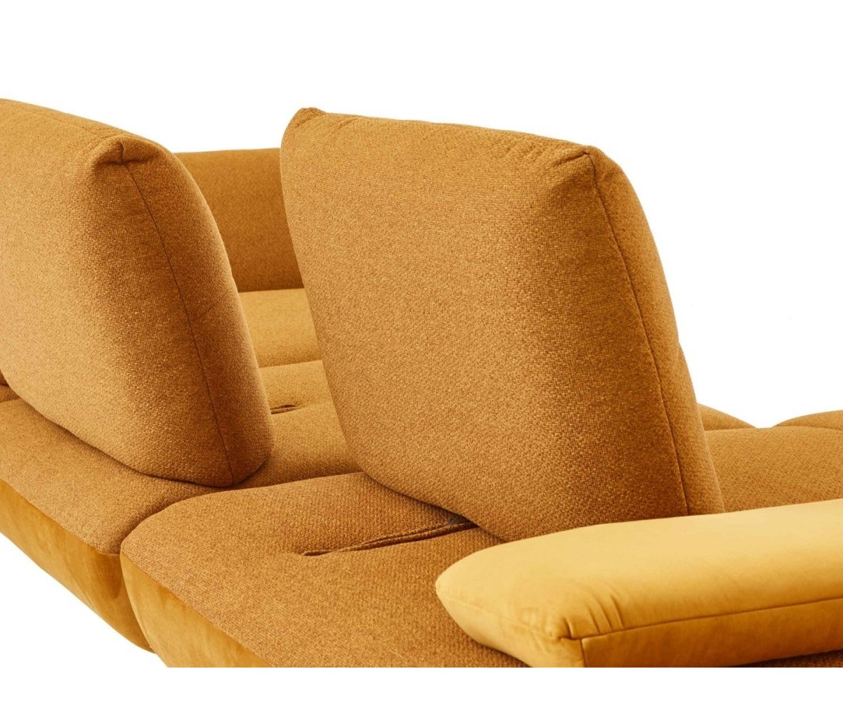 Součástí sedací soupravy je nastavitelná hloubka sezení pomocí posuvných opěráků. Záda sedací soupravy jsou čalouněná ve vybrané látce, takže sedací soupravu lze umístit také do prostoru.