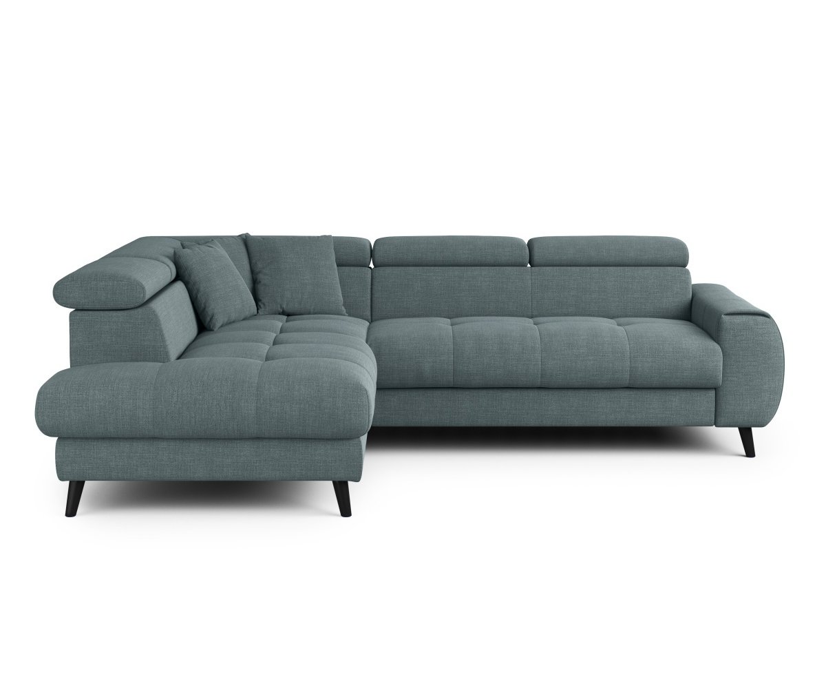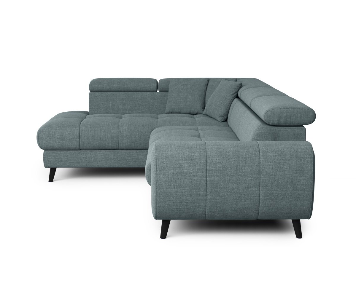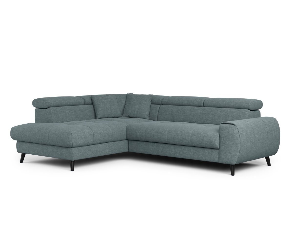 Rohová sedací souprava MIA Vás mile překvapí příjemnými tvary. Pohodlné sezení zaručují pohyblivé opěrky hlavy, které snadno nastavíte jedním pohybem.