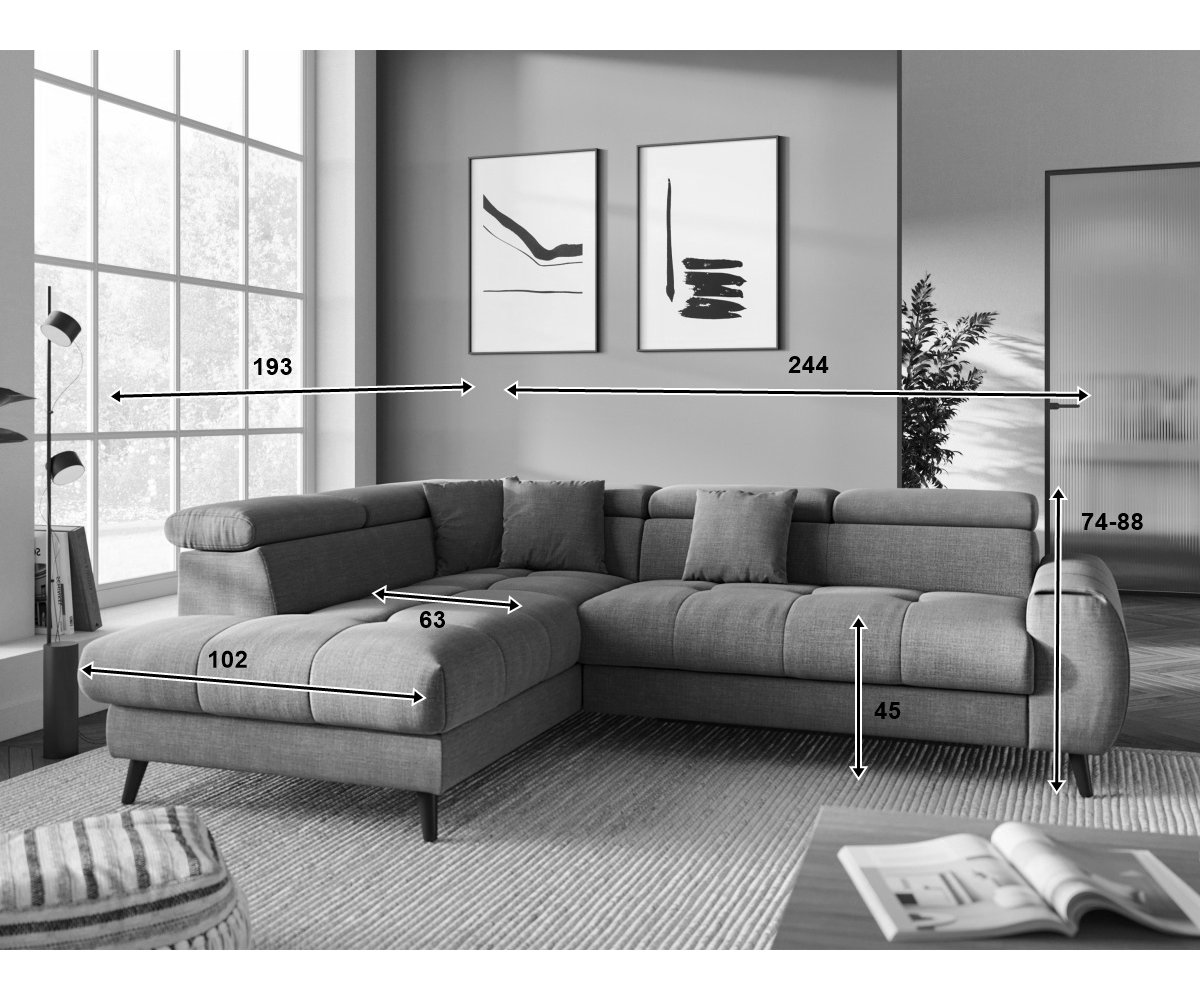 - 1ks rohová sedací souprava, rozměry 244/74-88/193 cm