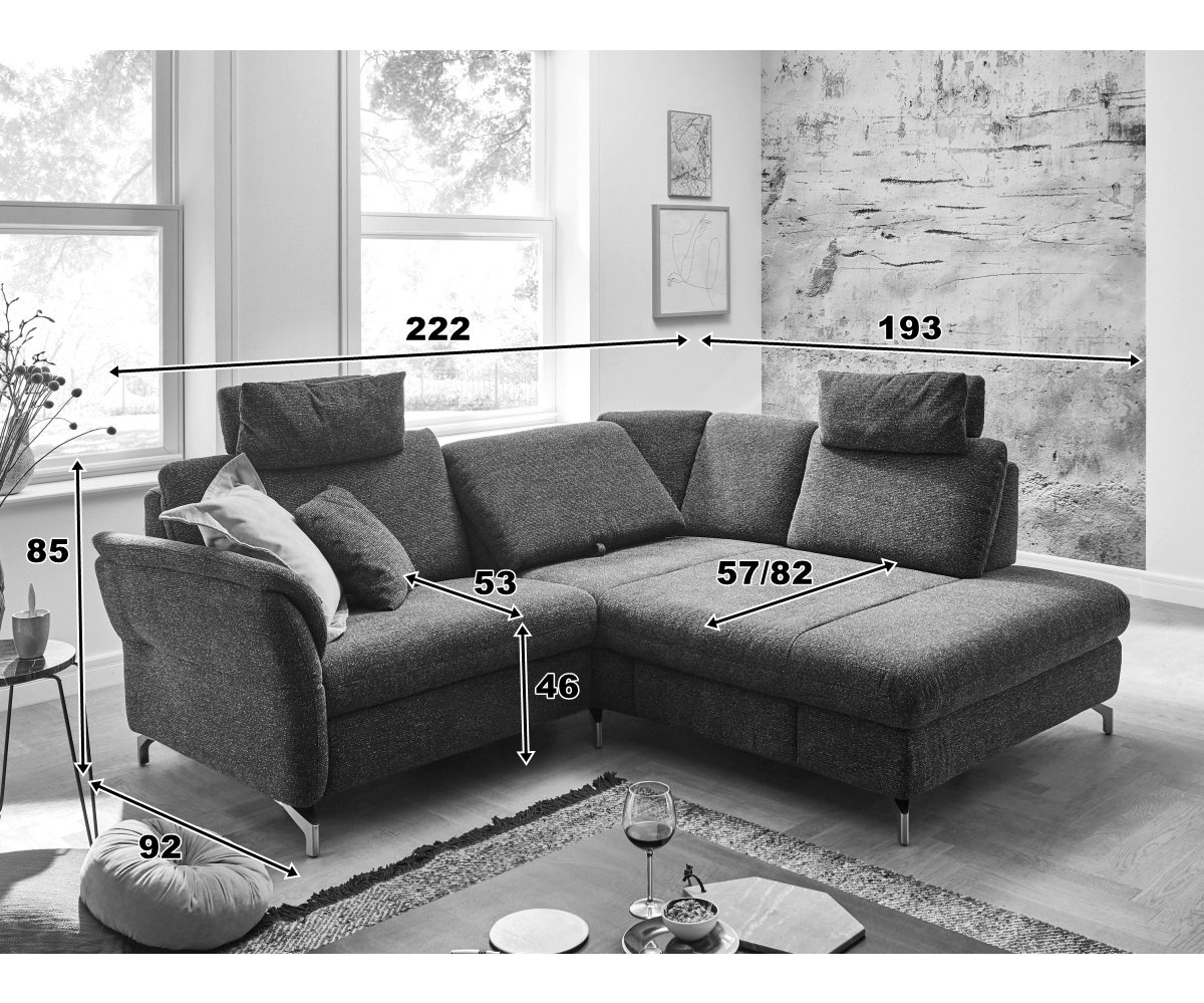 Rohová sedací souprava s relax funkcí a nastavitelnou hloubkou sedu TV MIA XC