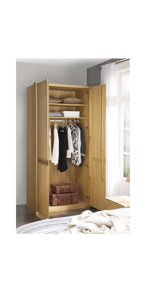 Dvoudvéřová dubová šatní skříň, která je vyrobena z masivu a přírodní dýhy. Moderní minimalistický design bez úchytek, tichého dovírání dveří "soft-close", kvalitní řemeslné zpracování, příjemně zaobledný tvar - to jsou hlavní přednosti dubového nábytku ATLANTA, který navíc dodáváme ve dvou barevných variantách. Skříň je standardně dodávána se dvěmi policemi a šatní tyčí v horní části.