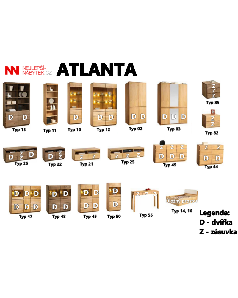 Seznamte se s celou nabídkou a vytvořte si vlastní sestavu nábytku ATLANTA.