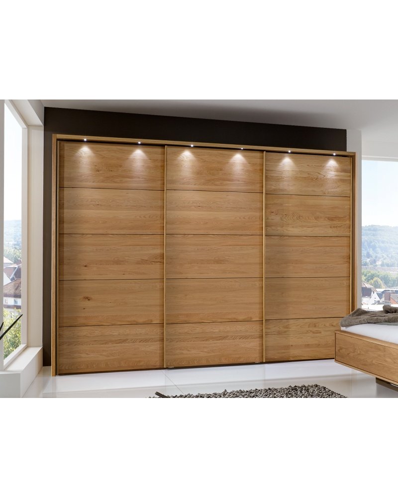 Moderní šatní skříň s posuvnými dveřmi a paspartovám rámem z německé kolekce nábytku TOLEDO v barevném provedení dubu. Nábytek je vyroben z masivu - dveře skříně v kombinaci s korpusy zhotovenými z kvalitní přírodní dýhy.