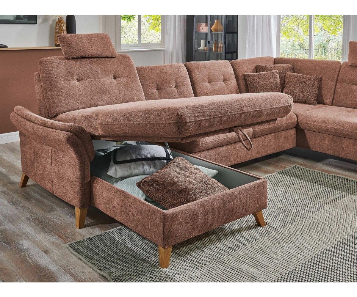 Pro ty, kteří hledají více než jen místo k sezení, je k dispozici možnost objednat sedačku s funkcí spaní a úložným prostorem za příplatek. To z ní činí ideální volbu pro menší byty nebo pro hosty, kteří u vás často přespávají.Nohy sedačky jsou vyrobeny z bukového masivu, což zajišťuje stabilitu a dlouhou životnost. Pokud preferujete jiný typ dřeva, lze za příplatek zvolit nohy z dubového masivu, které přidají na exkluzivitě a odolnosti.